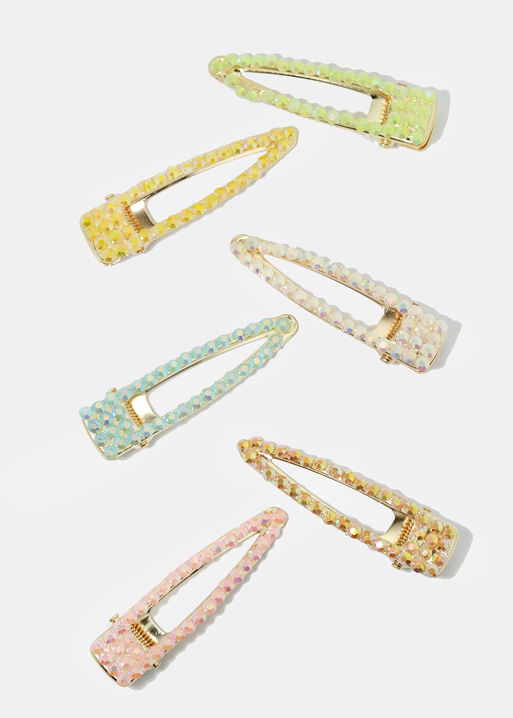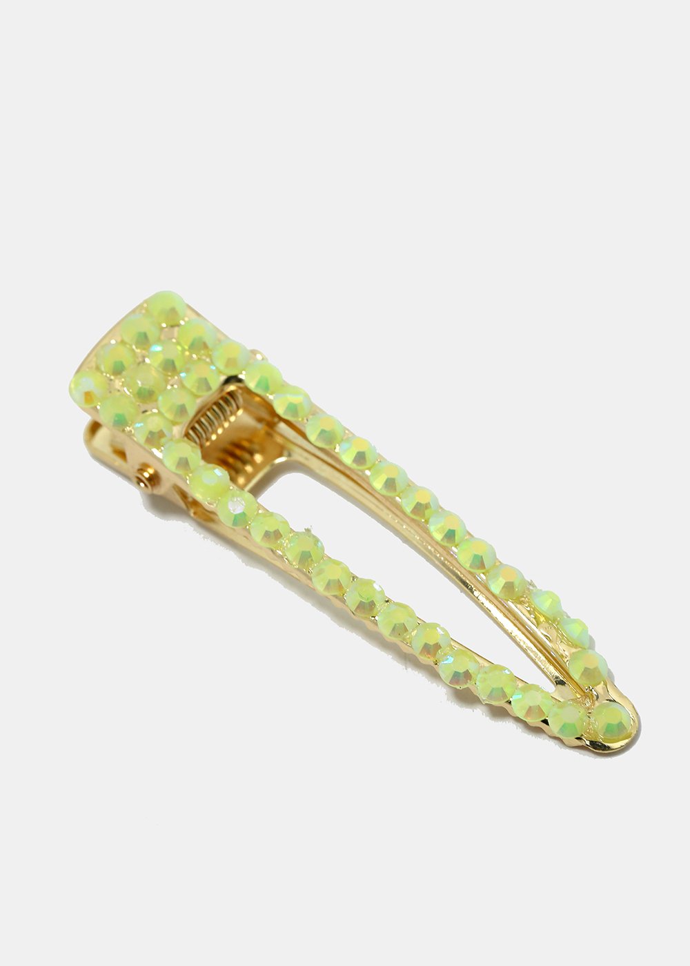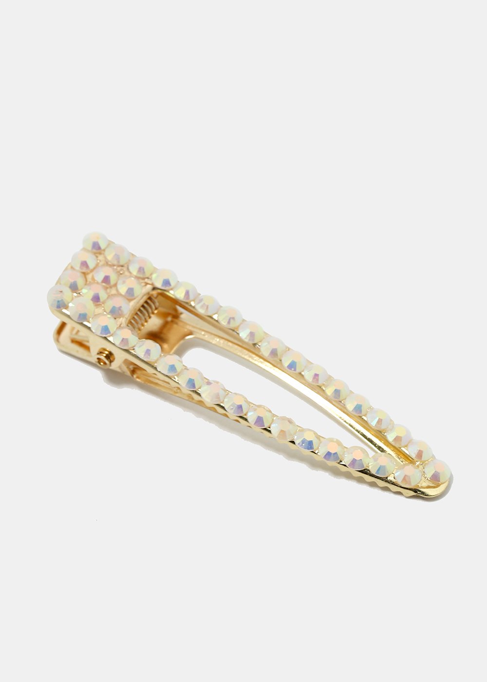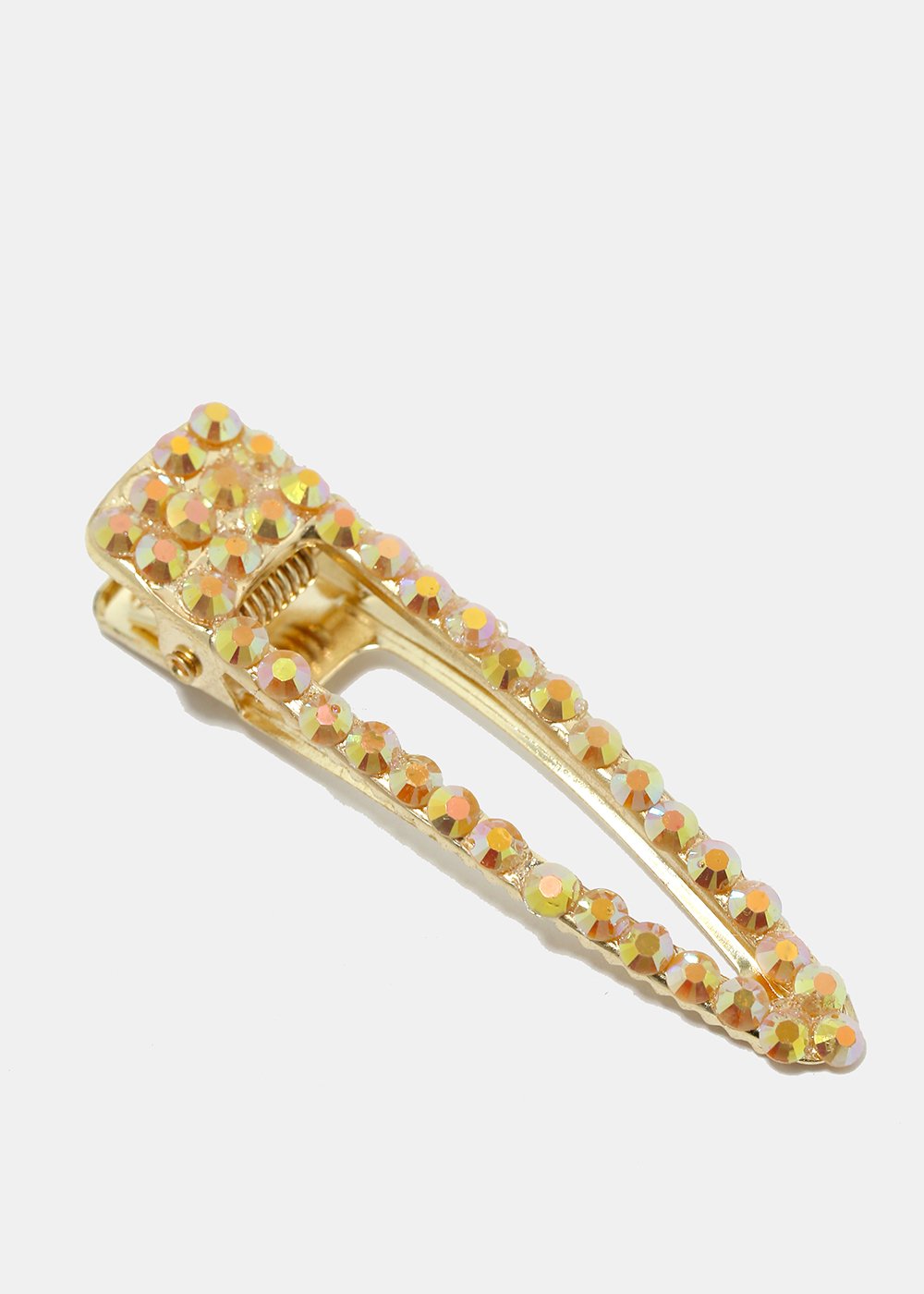 Gorgeous 2-piece gemstone hair pins including a large gleaming gemstone studded pin and a bobby pin covered in sparkly rhinestones! An essential for this years fashion trends!