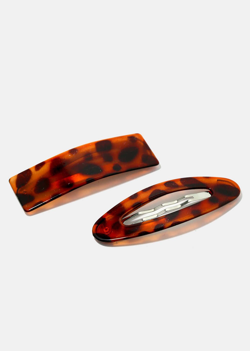 Timeless 2-piece oval and rectangle tortoise hair clips in neutral colors. Enhance your look with this set for your casual everyday look. The classics that never get out of style. Definitely an essential in your collection.