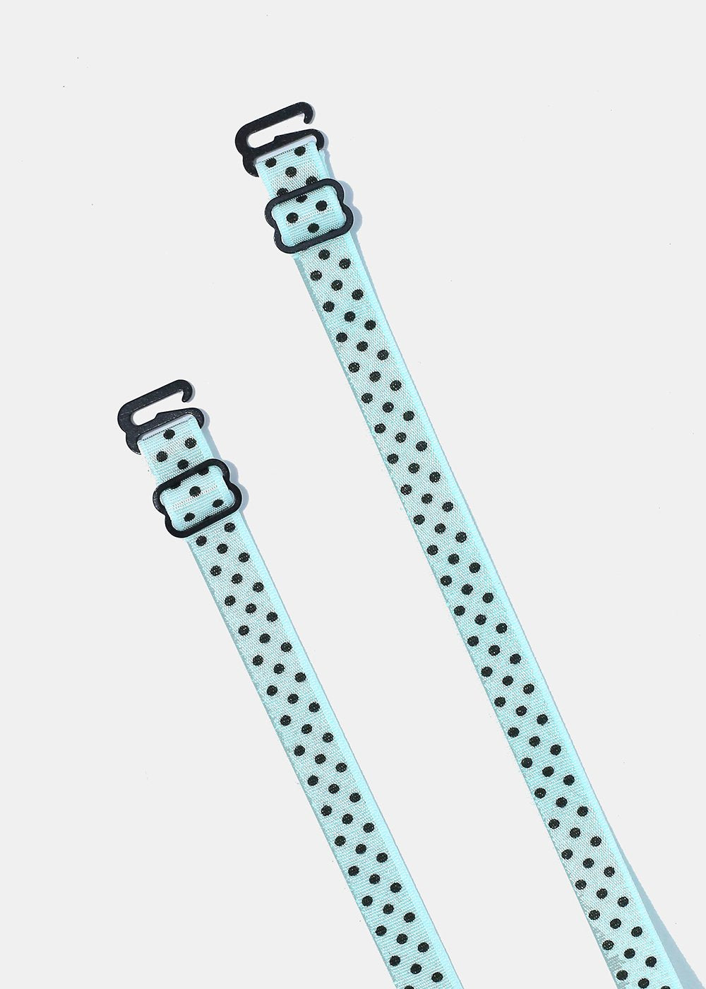 Set of 2 adjustable bra straps that can be hooked onto any bra with removable straps. Comes in a variety of adorable polka dot prints to switch up for a cute touch to your bras!