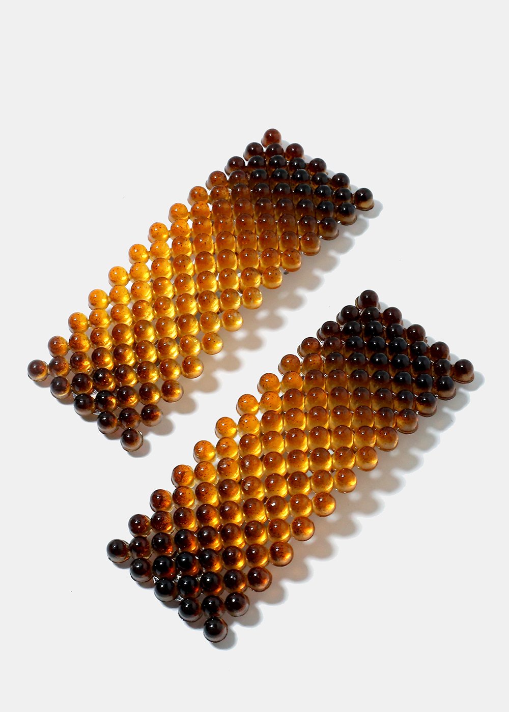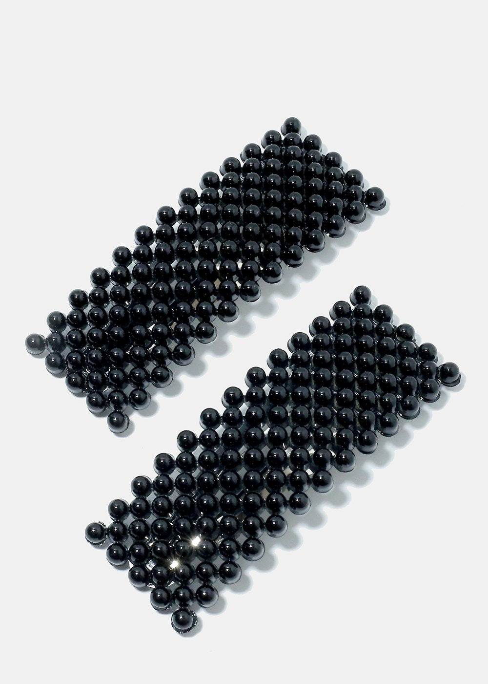 Beaded rectangular shaped hair pins in a 2-piece set. These are perfect for an everyday wear. Their neutral colors are easily paired with any look! A must-have in your collection.