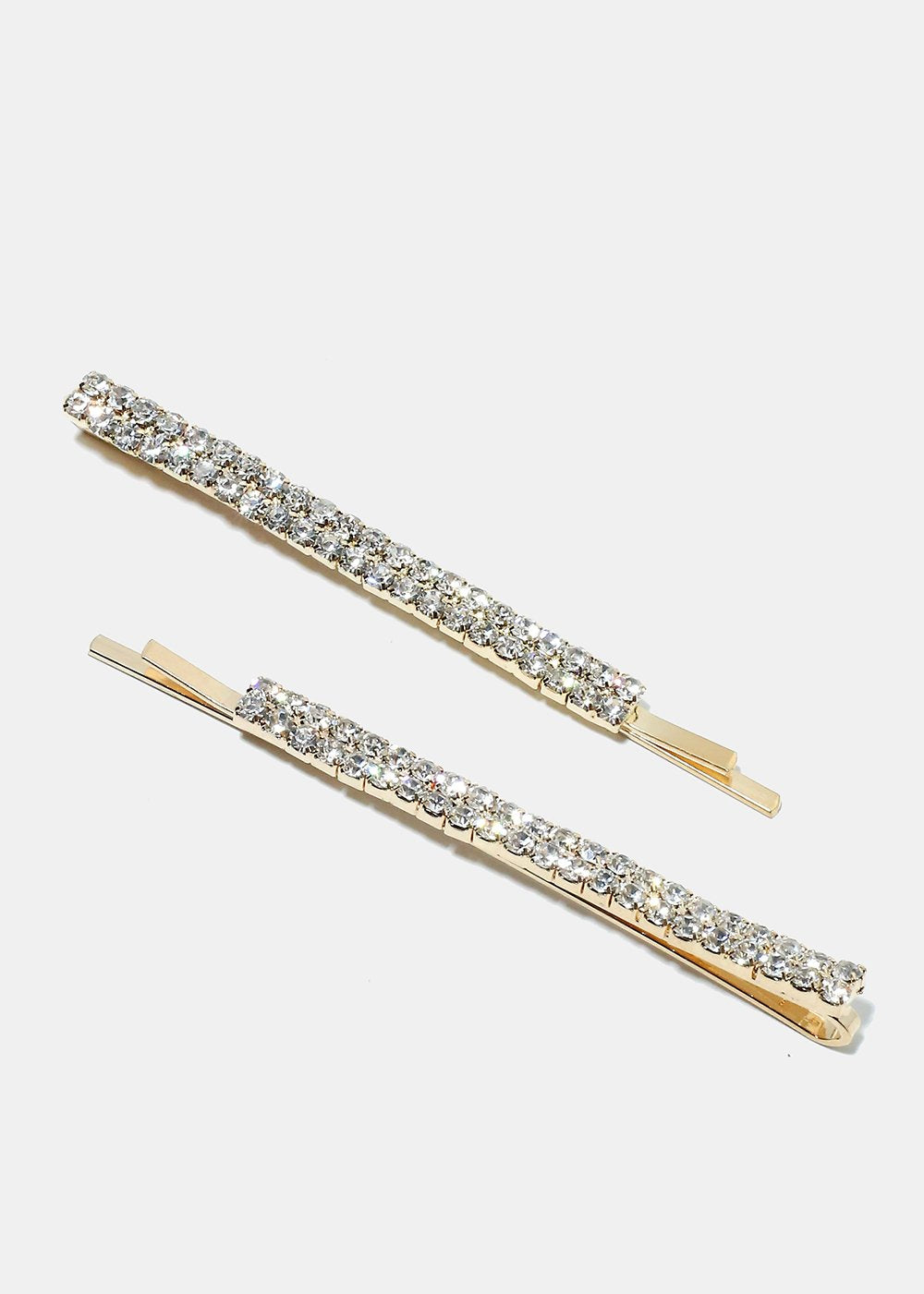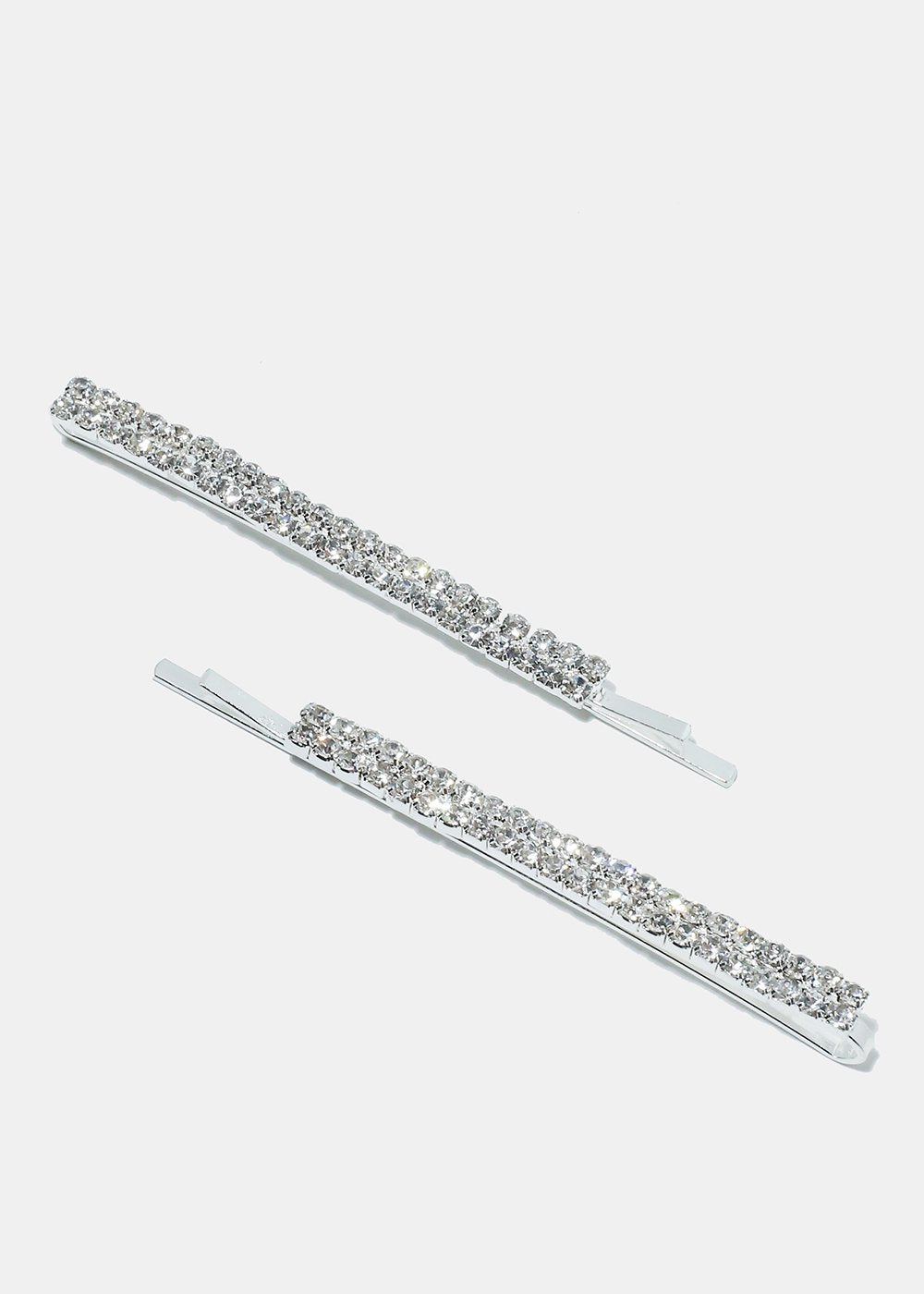 Go all glam with these 2-piece rhinestone pave hair clips. The perfect touch to your hair-do!