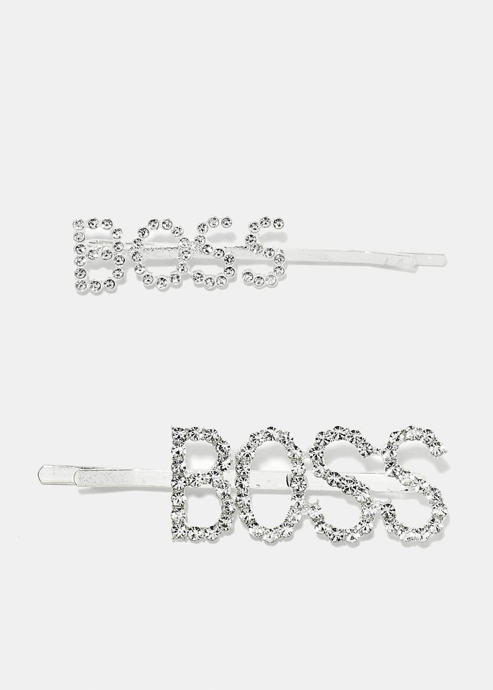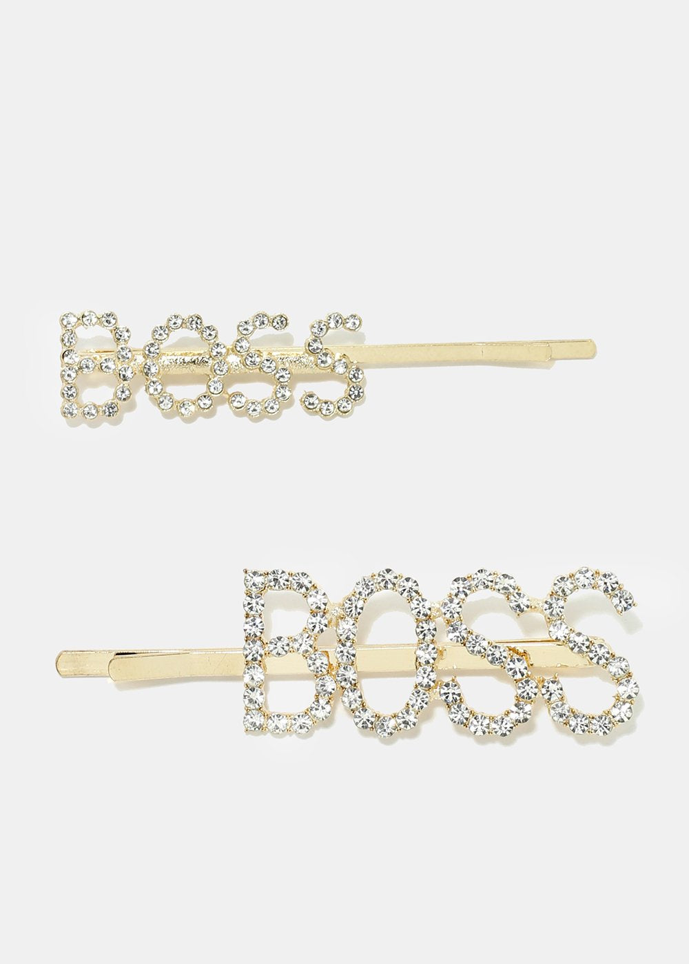 2-Piece Rhinestone Studded "BOSS" Hair Pins