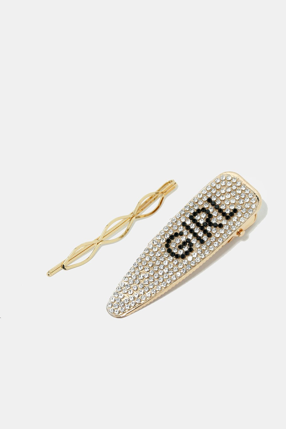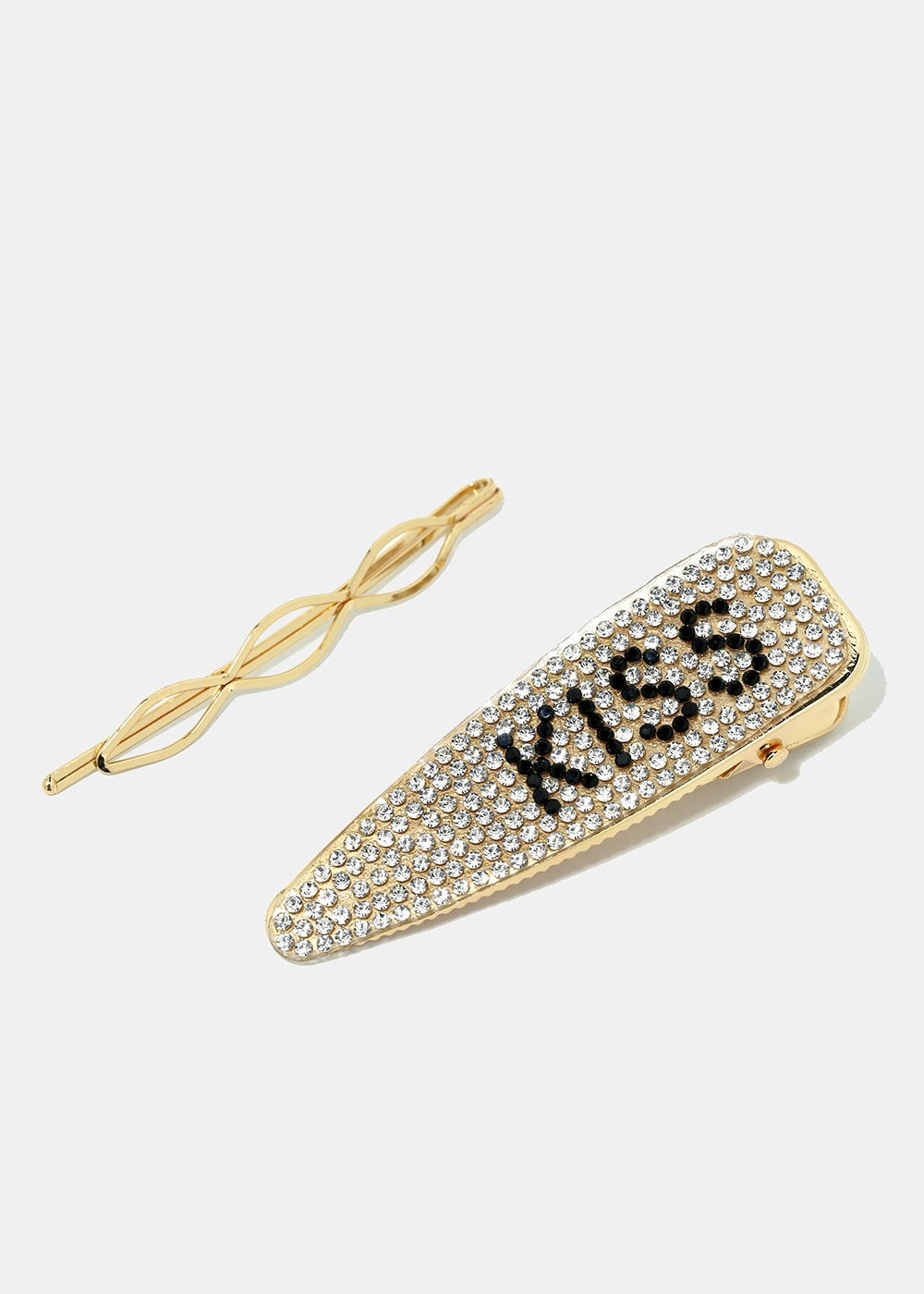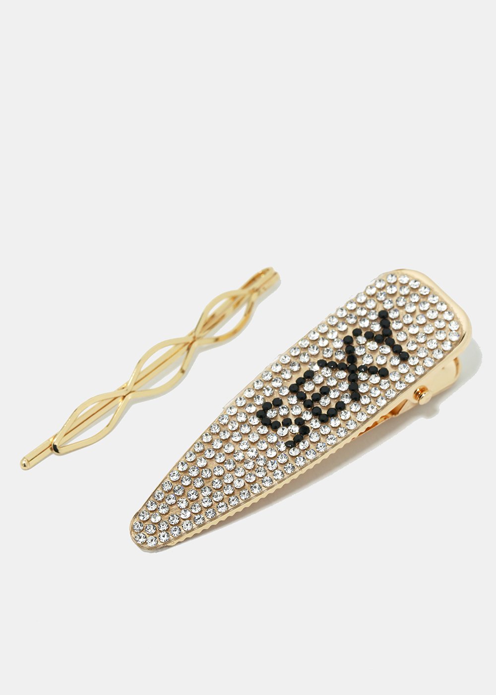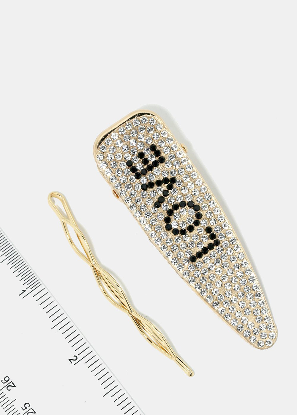 • Load image into Gallery viewer, 2-Piece Rhinestone Studded Logo Hair Pins