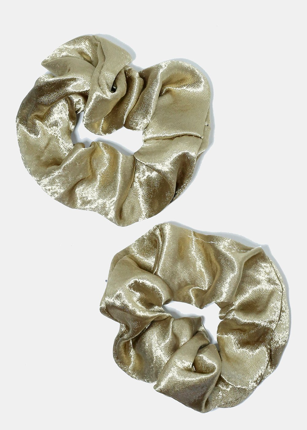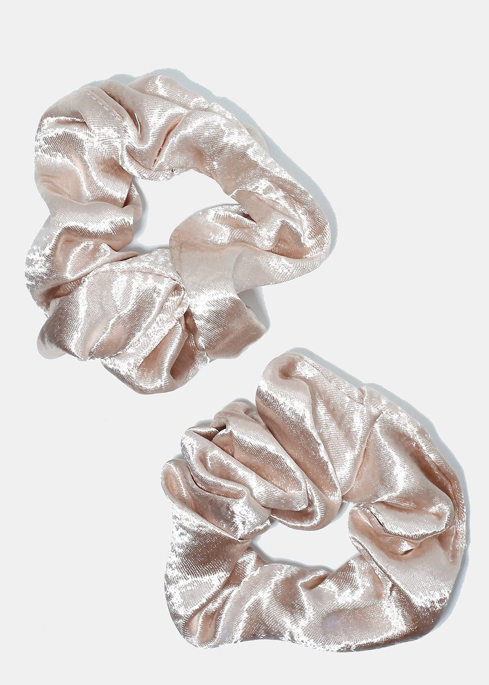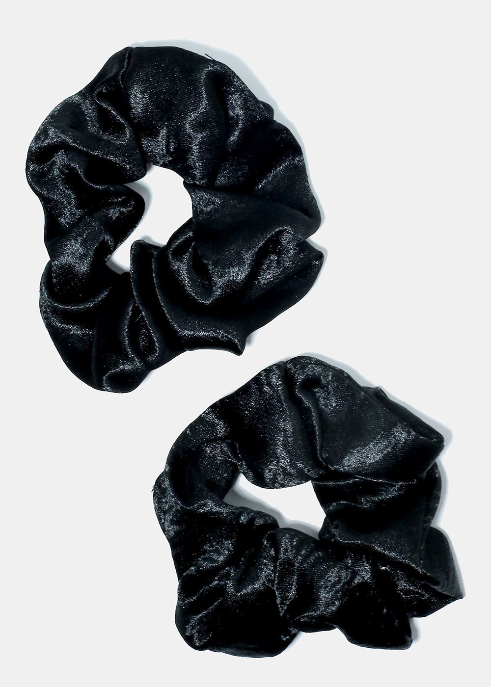 Soft and stretchy hair scrunchies in a 2-piece set. A satin silky touch to your hair do whether it be a ponytail, braids, or a hair bun!