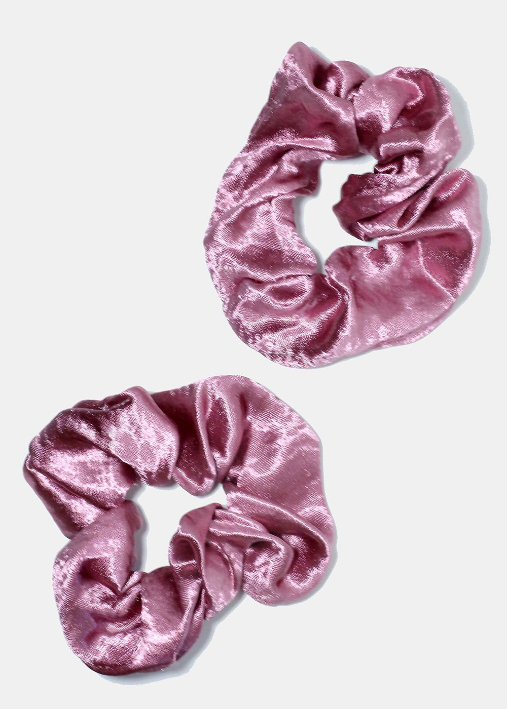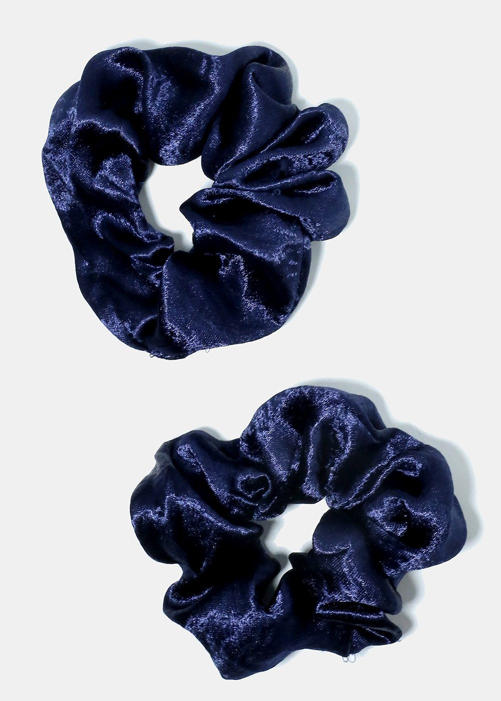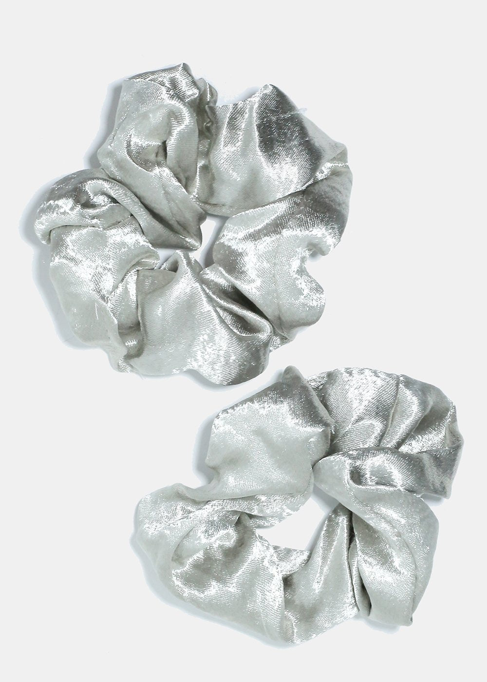 Soft and stretchy hair scrunchies in a 2-piece set. A satin silky touch to your hair do whether it be a ponytail, braids, or a hair bun!
