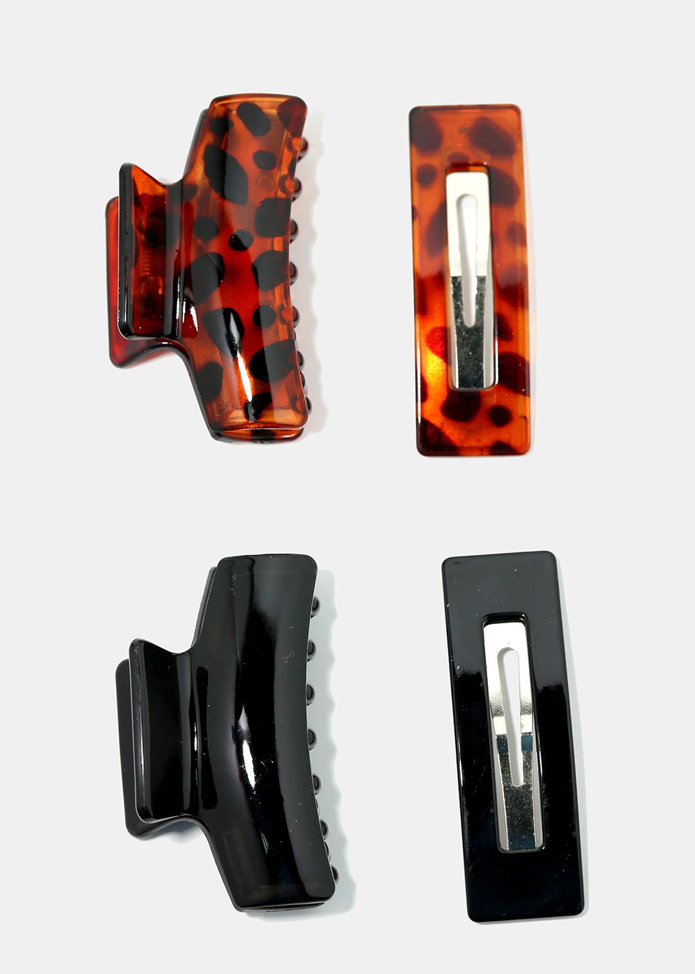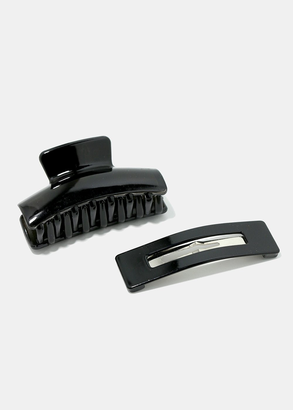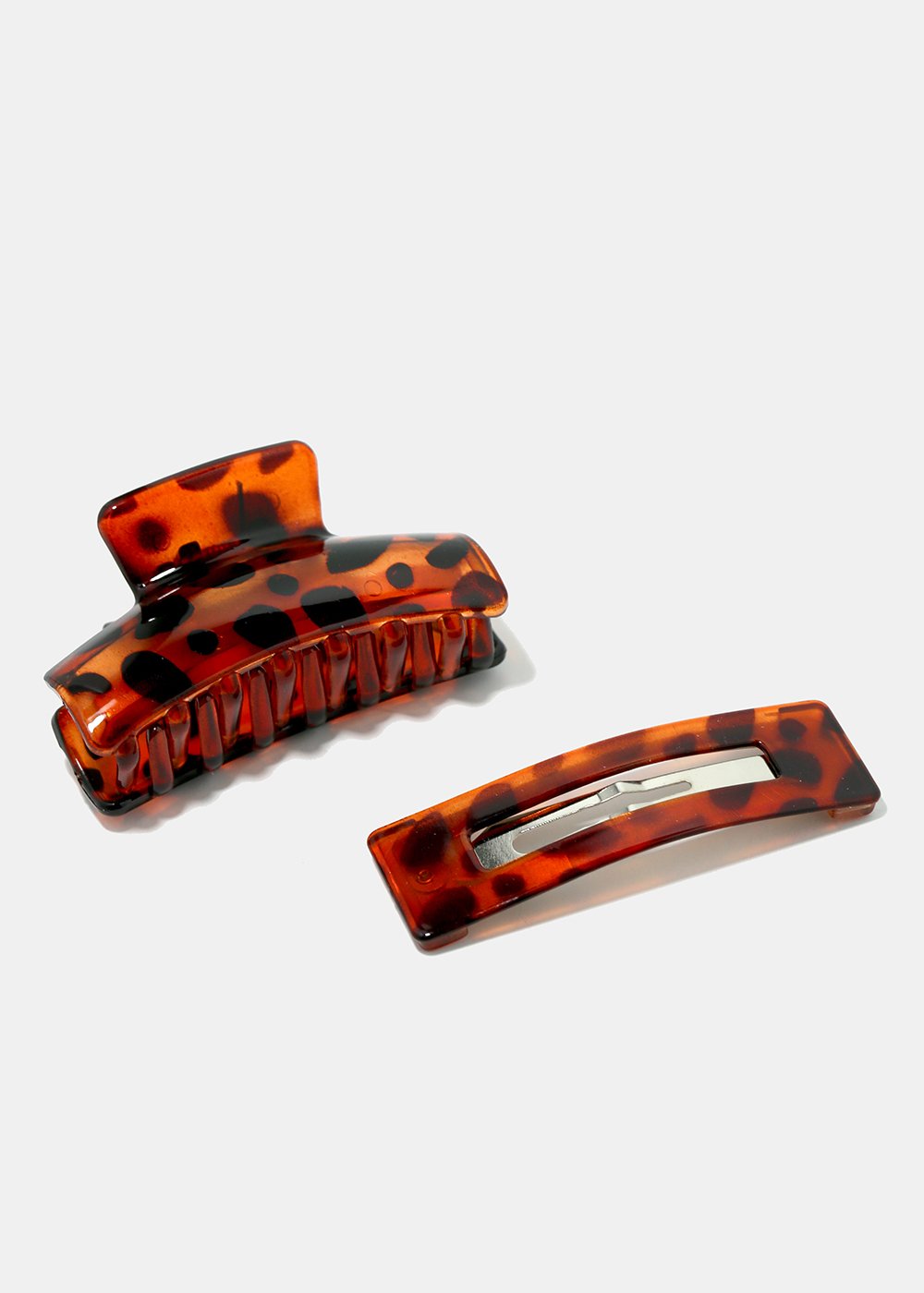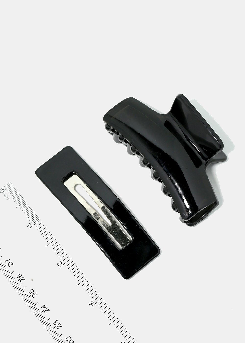 The perfect set everyone needs to have in their accessories! This 2-piece snap and jaw clip set are essentials for your everyday life. Casual neutral colors easily worn with everything from business casual looks to a date night out!