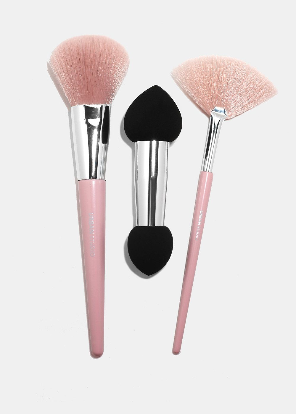 This 3 Piece All You Need Brush kit from Cala has a large powder brush, a double sided pointed blending sponge, and a Fan Brush!
