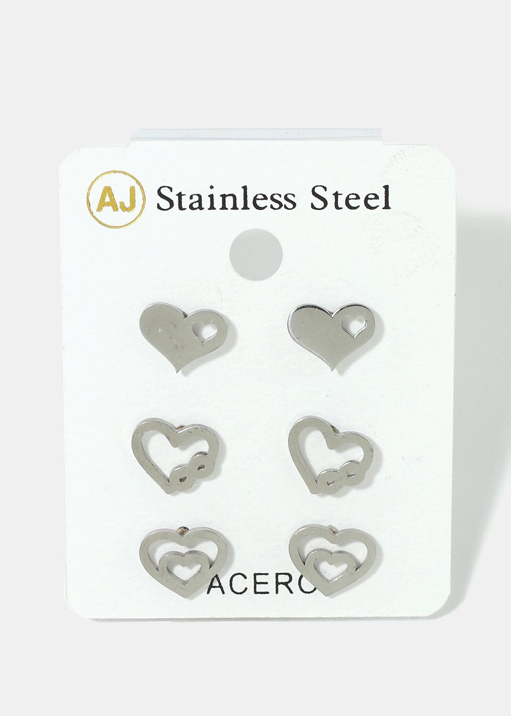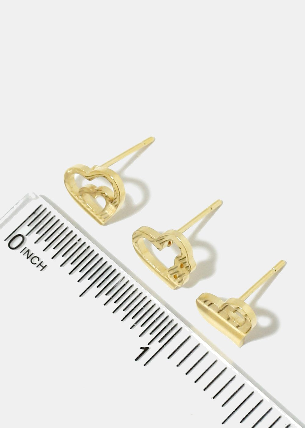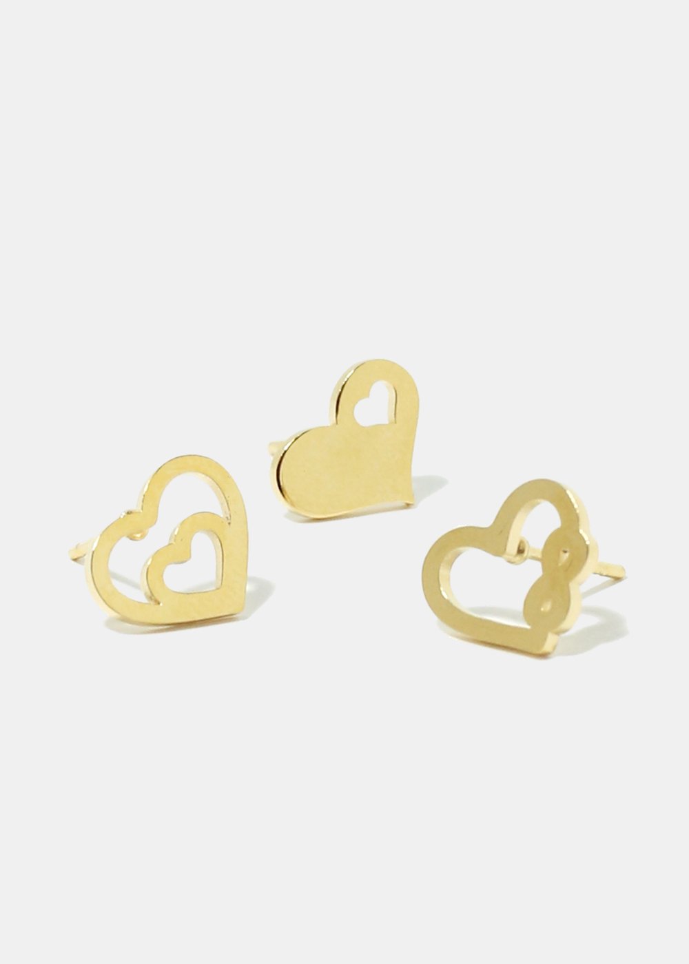 Charming set featuring 3-pairs of heart shaped earrings in a plain design. The perfect set that goes beautiful with your everyday wear. Wear them to school, work, or even the gym!