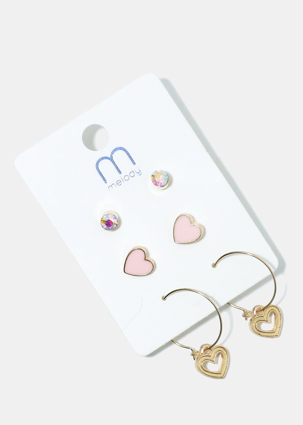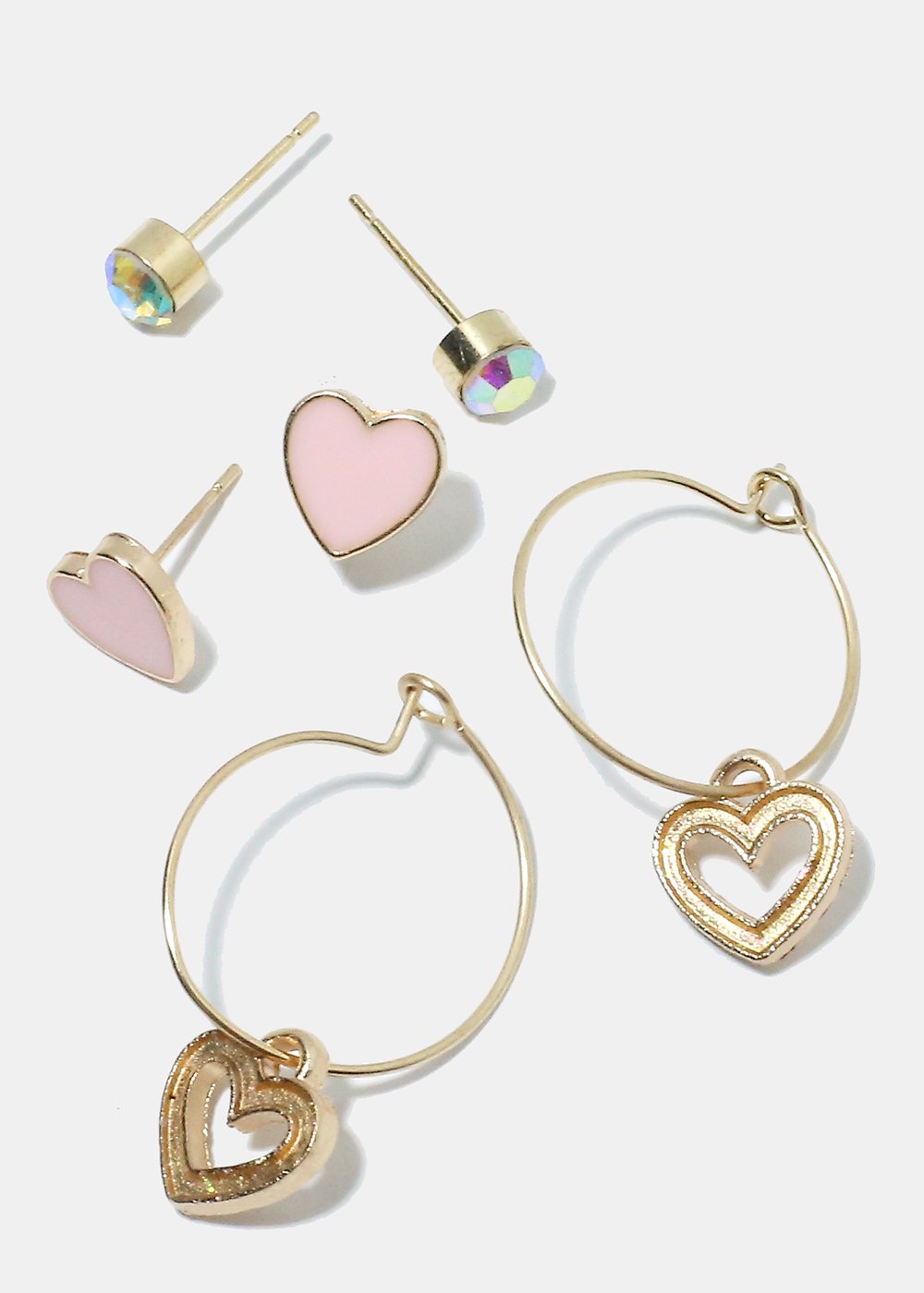Sweet set featuring 3-pairs of heart designed earrings! Adds a romantic lovely touch to your ensemble that can be paired with an everyday look or for a special date night!