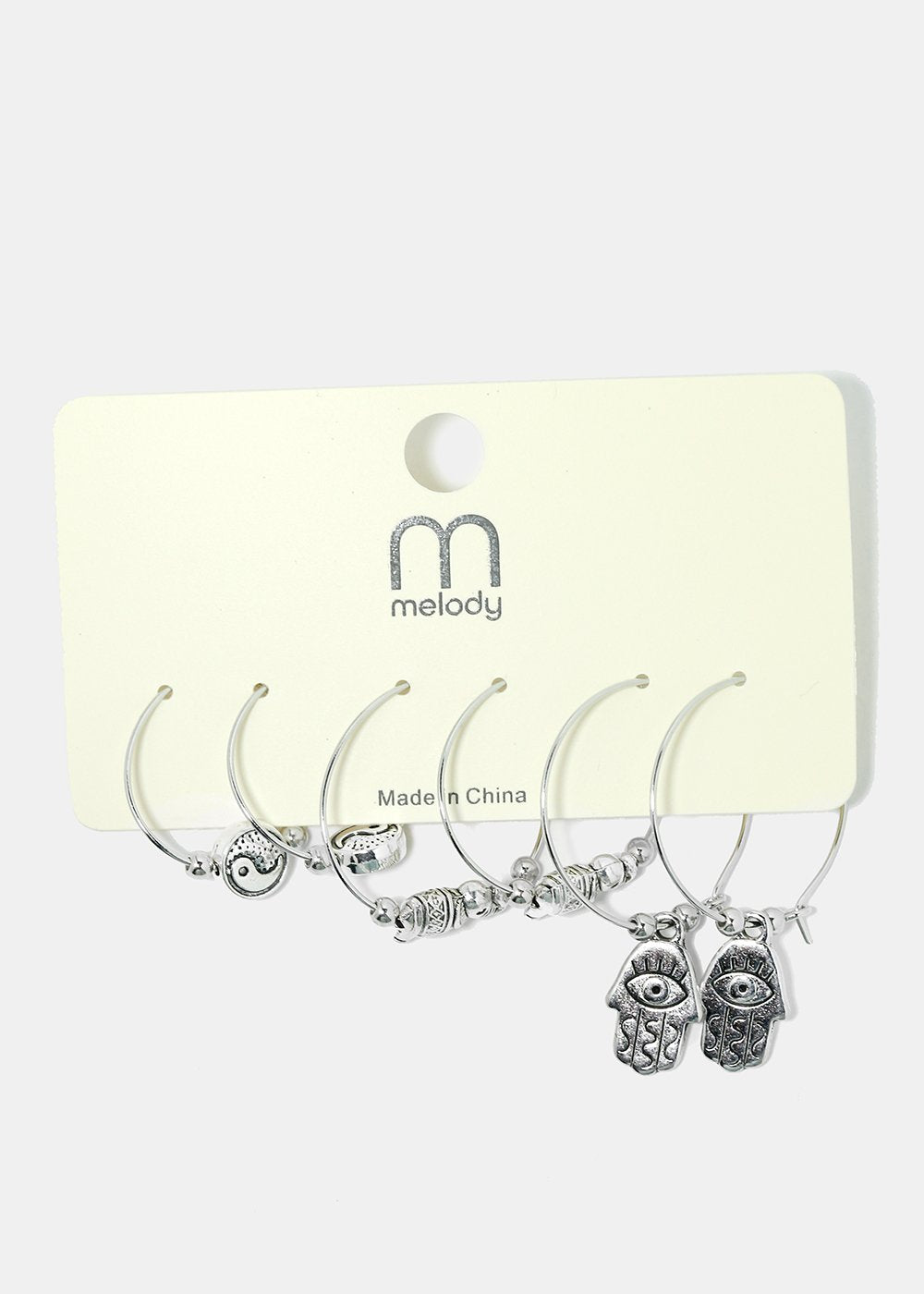 Gorgeous silver metal earrings with different amazing designs. This set is perfect for casual to night out looks! An essential addition to your earring collection!