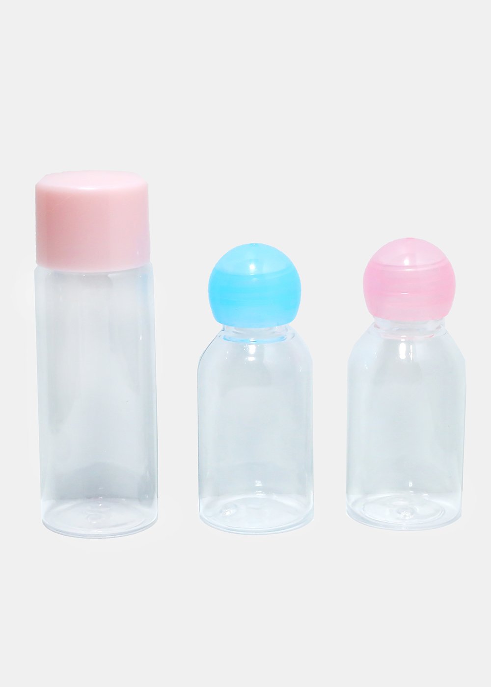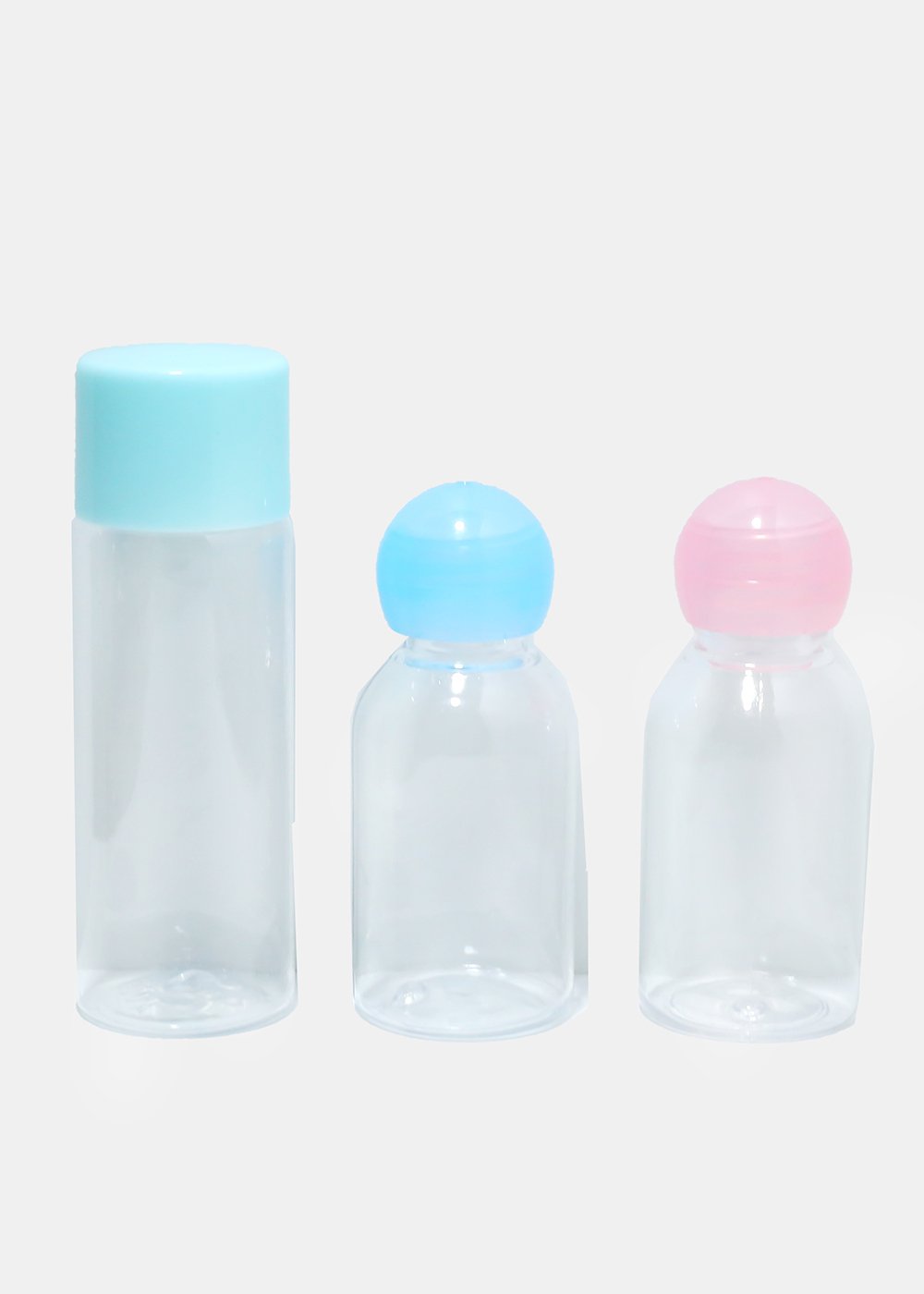 Get this 3-piece bottle set, perfect size for traveling! Clear see-through bottles so its easy to tell apart products and an easy to open bottle cap! Definitely a must for your special vacation!