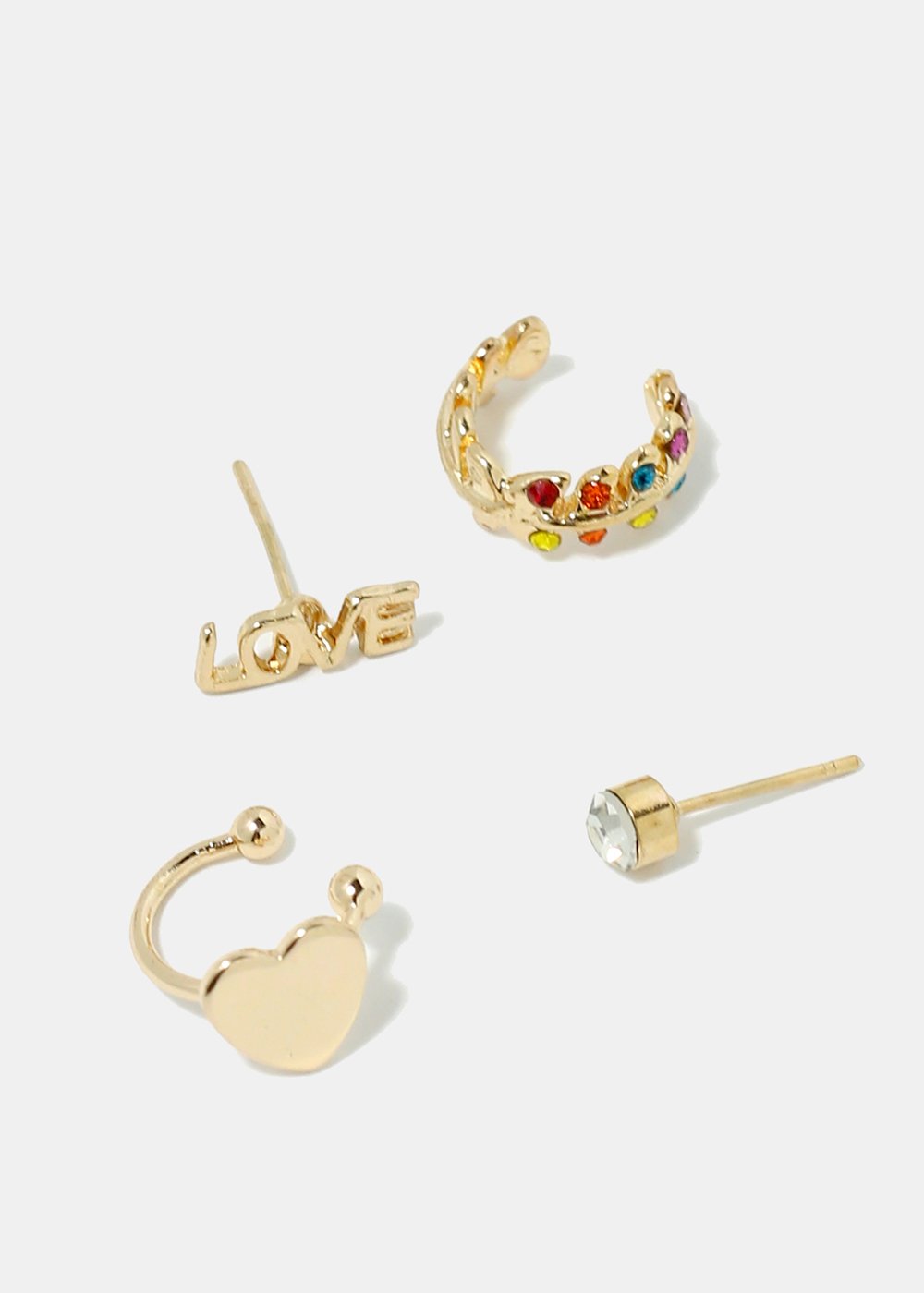 Change up your basic look with this 4 piece set including ear cuffs and earring studs. A unique and chic touch to your ensemble!
