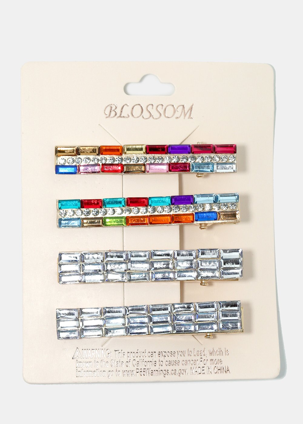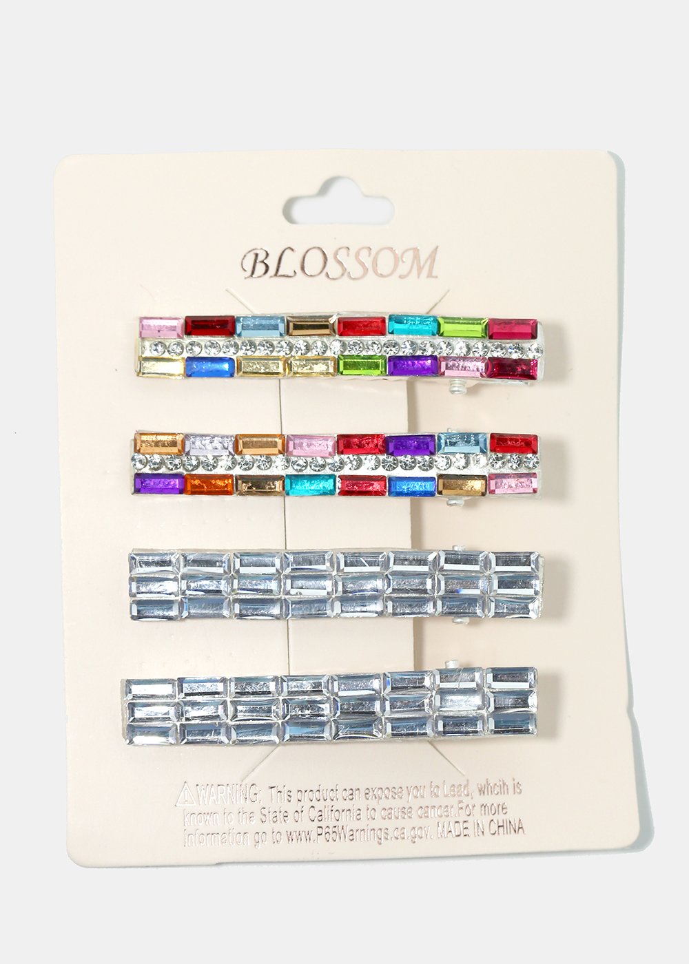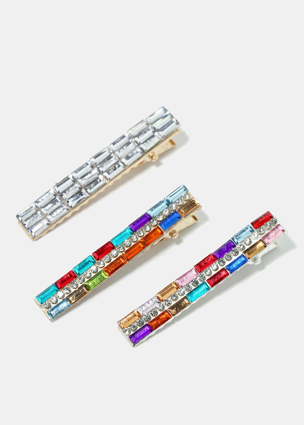 Spike up your look with these shiny colorful bright hair pins in a 4-piece set! Great for pairing them all together or for styling them individually. Easy way to finish off your outfit and add a splash of gleaming colors!