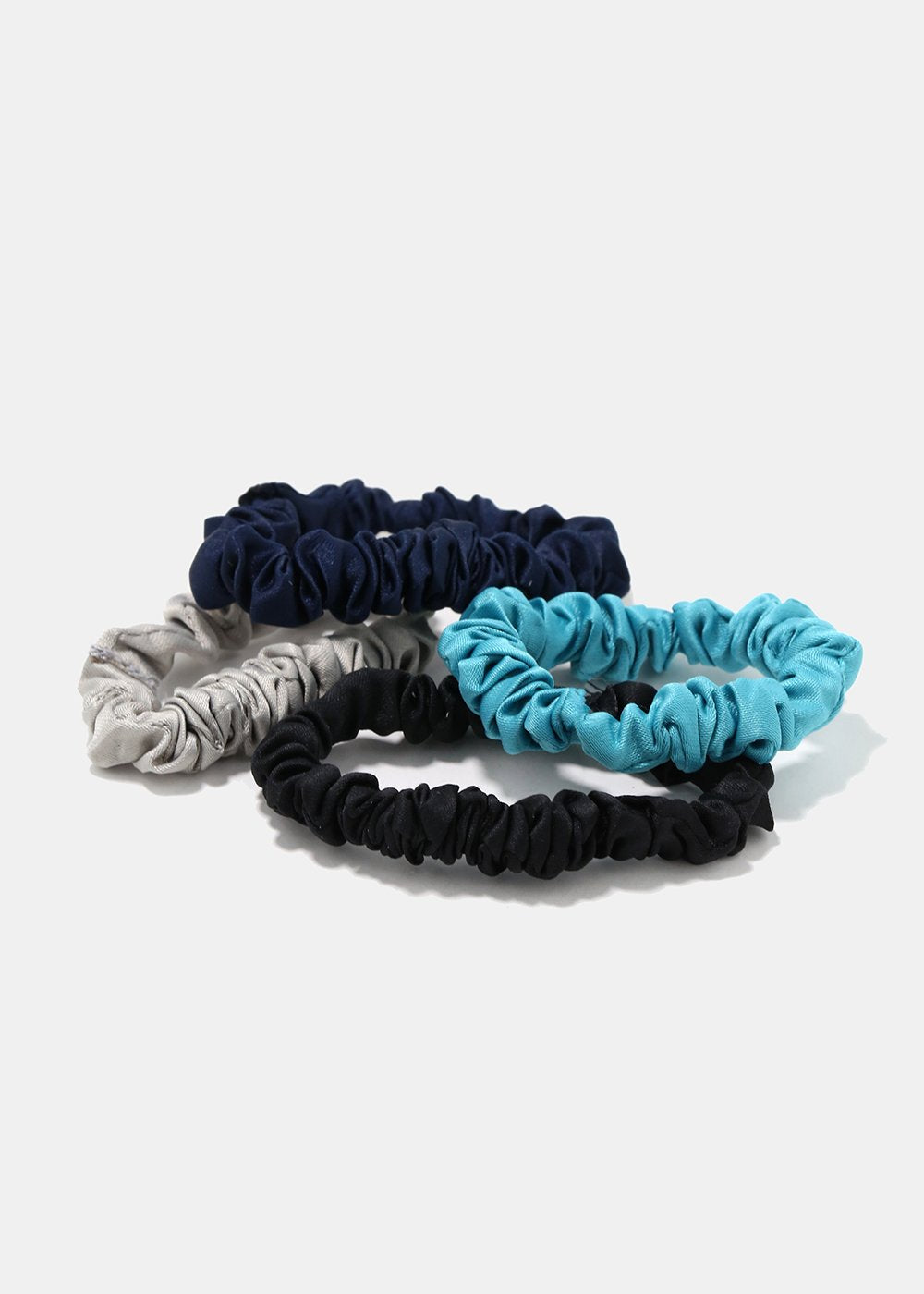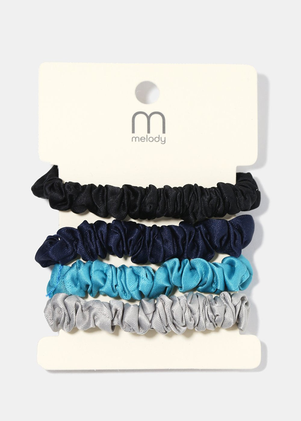 Smooth satin elastic hair ties in scrunched design. Adds a cute touch to your ponytail or bun!