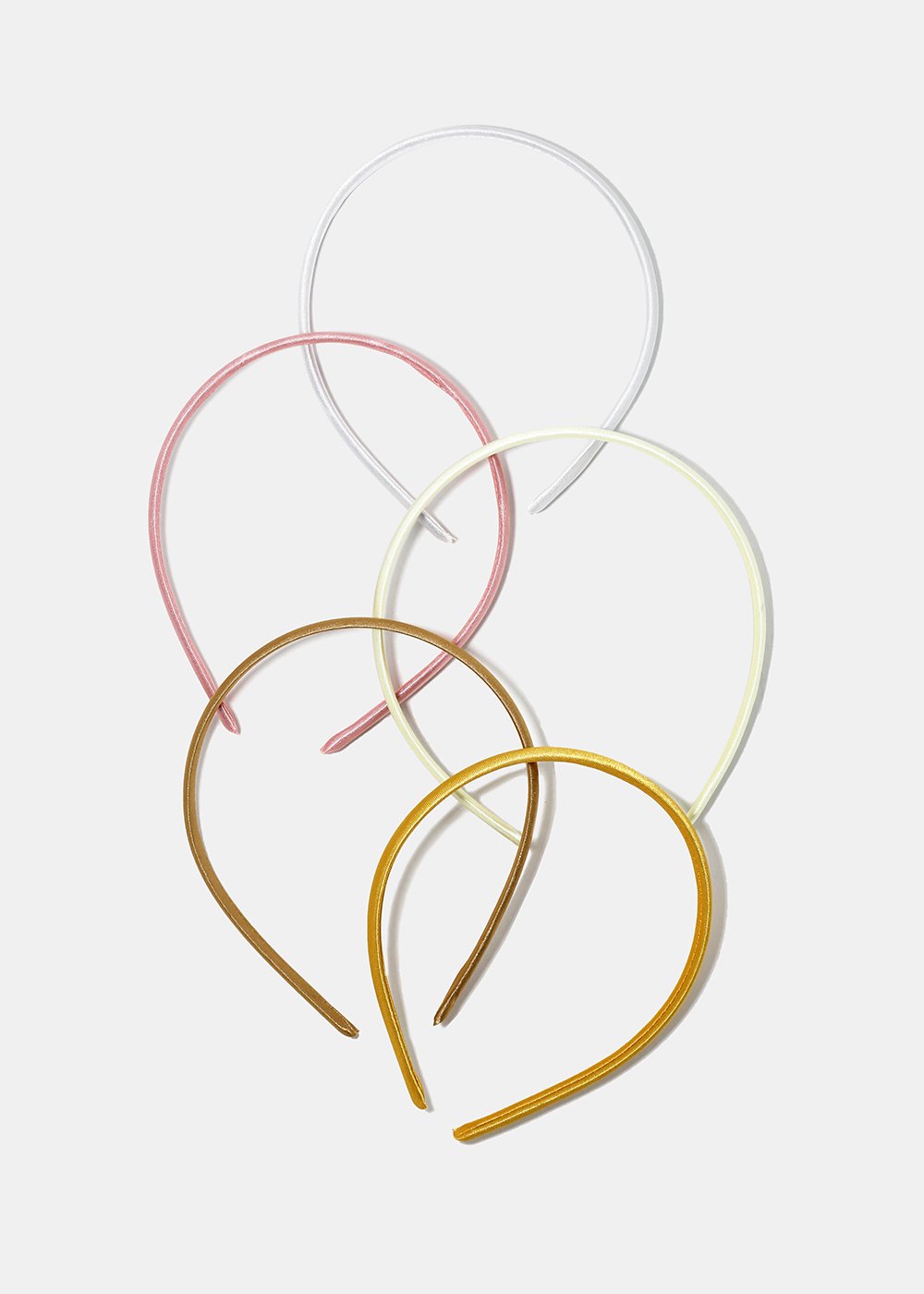 Five-piece sets of thin headbands in bright and neutral tones. A simple yet stylish final touch!