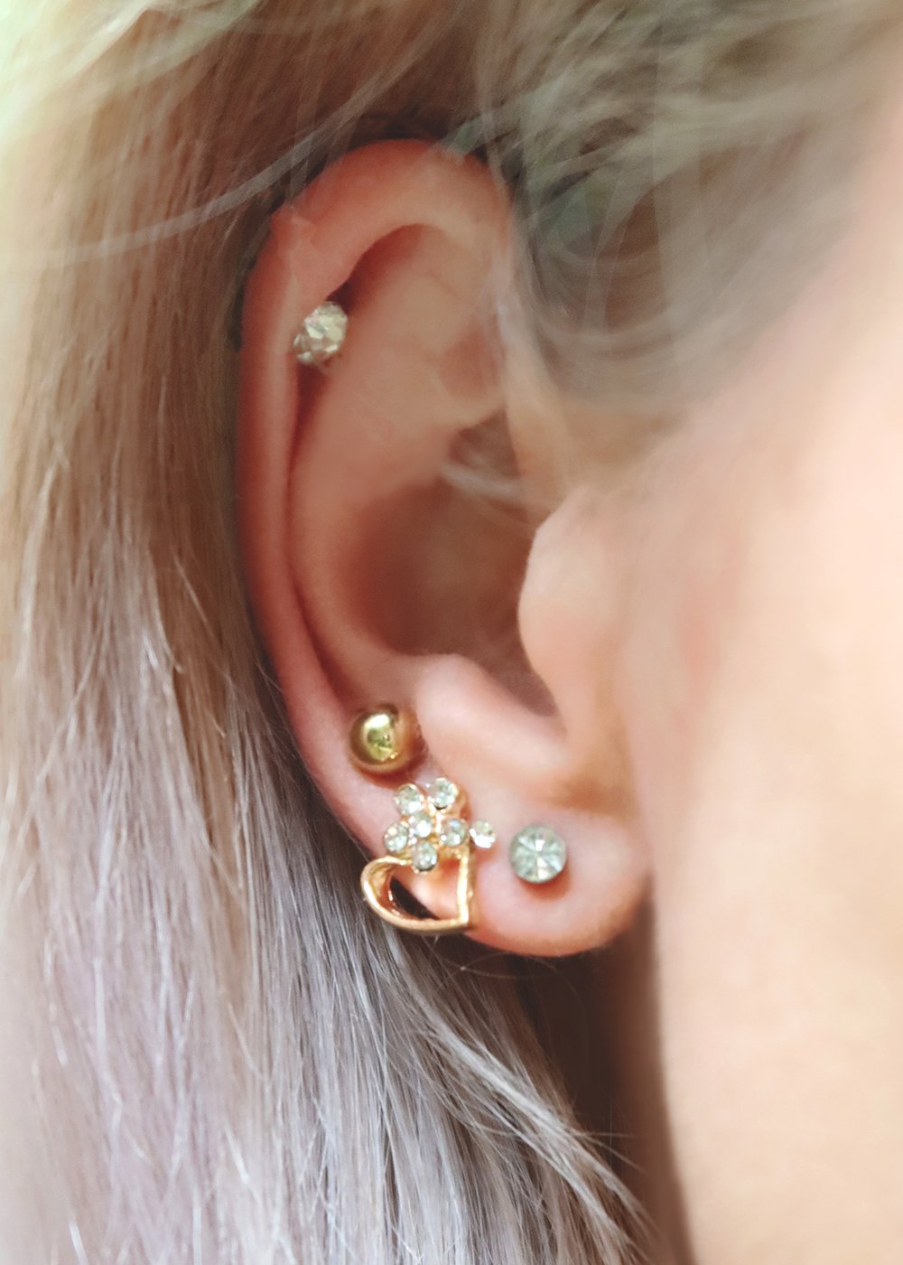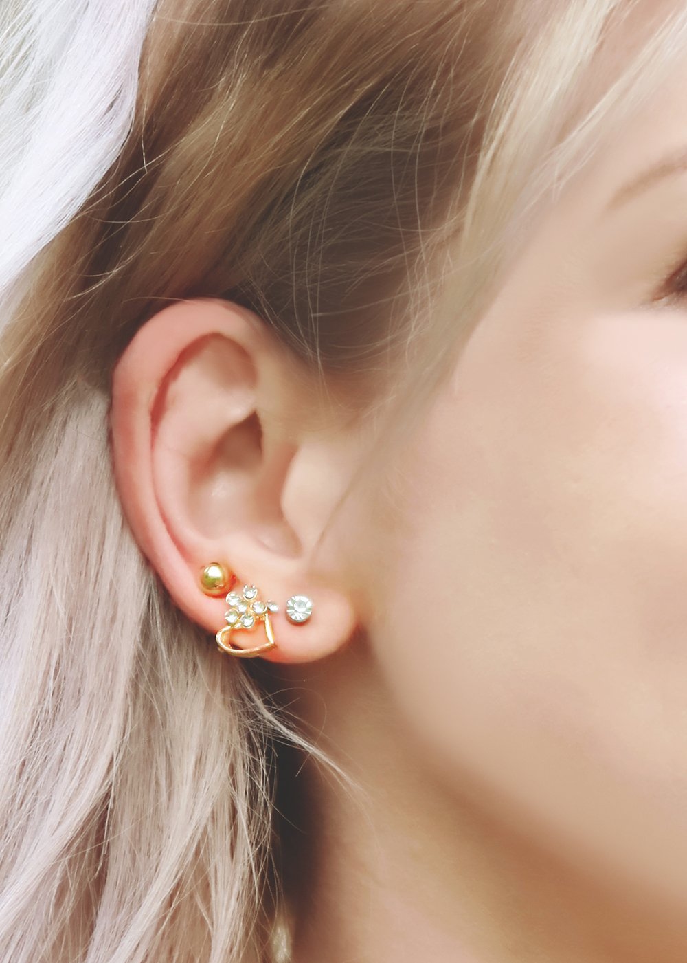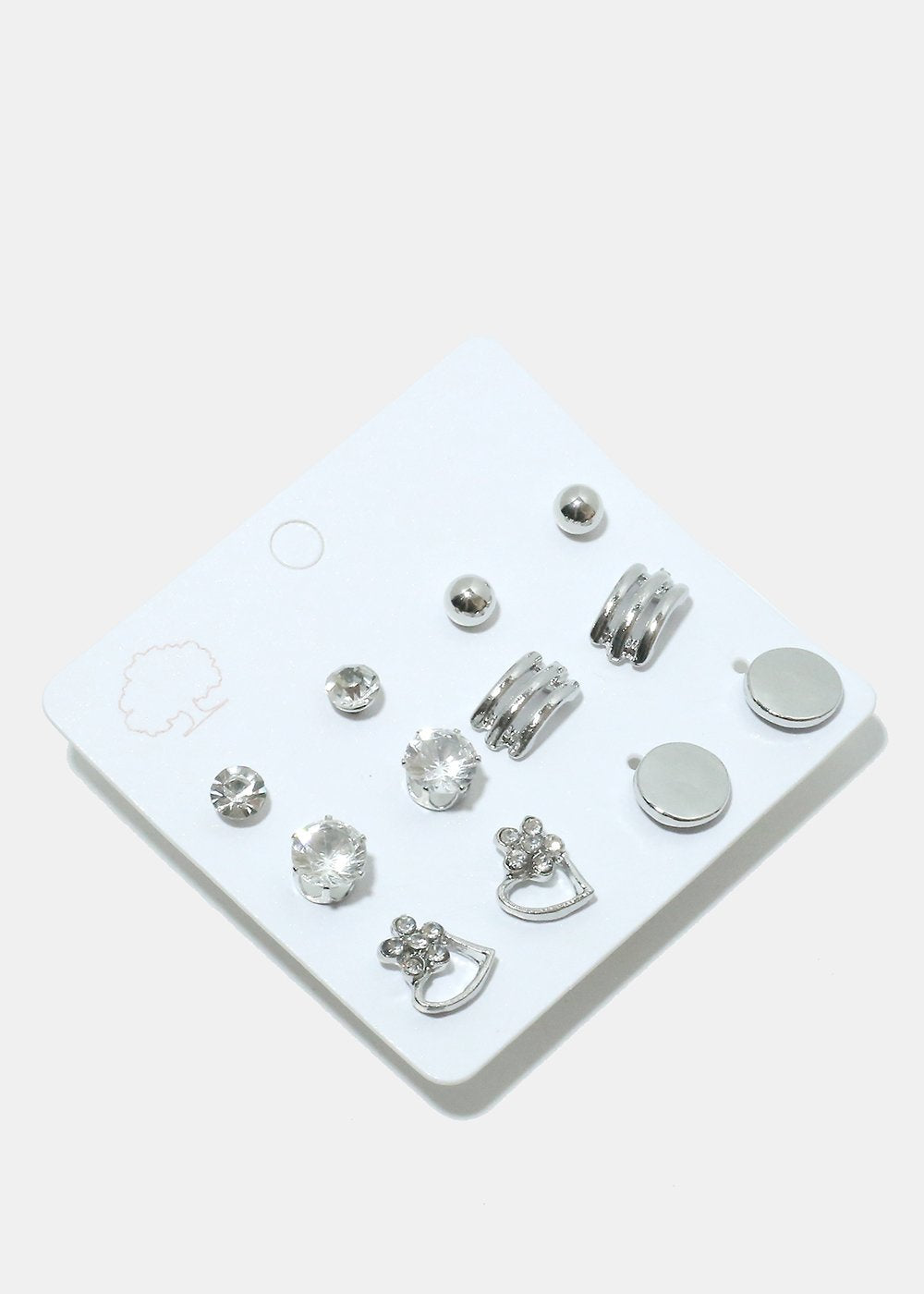 Chic and modern 6-pair of stud earrings set featuring disk, ball, and rhinestone designs. Wear them with casual to night out looks!