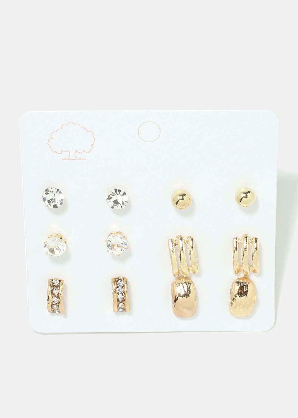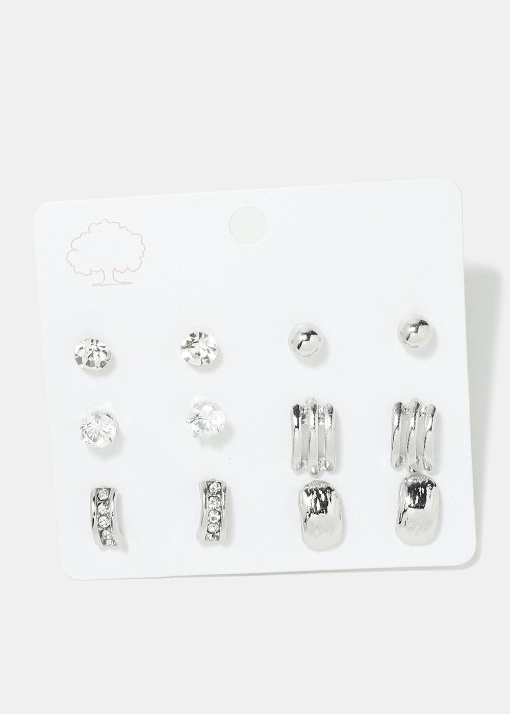 Get plain and rhinestone studded designs with this set of 6-pair earrings. Choose from hoop, ball or other styles! A must-have in your collection.