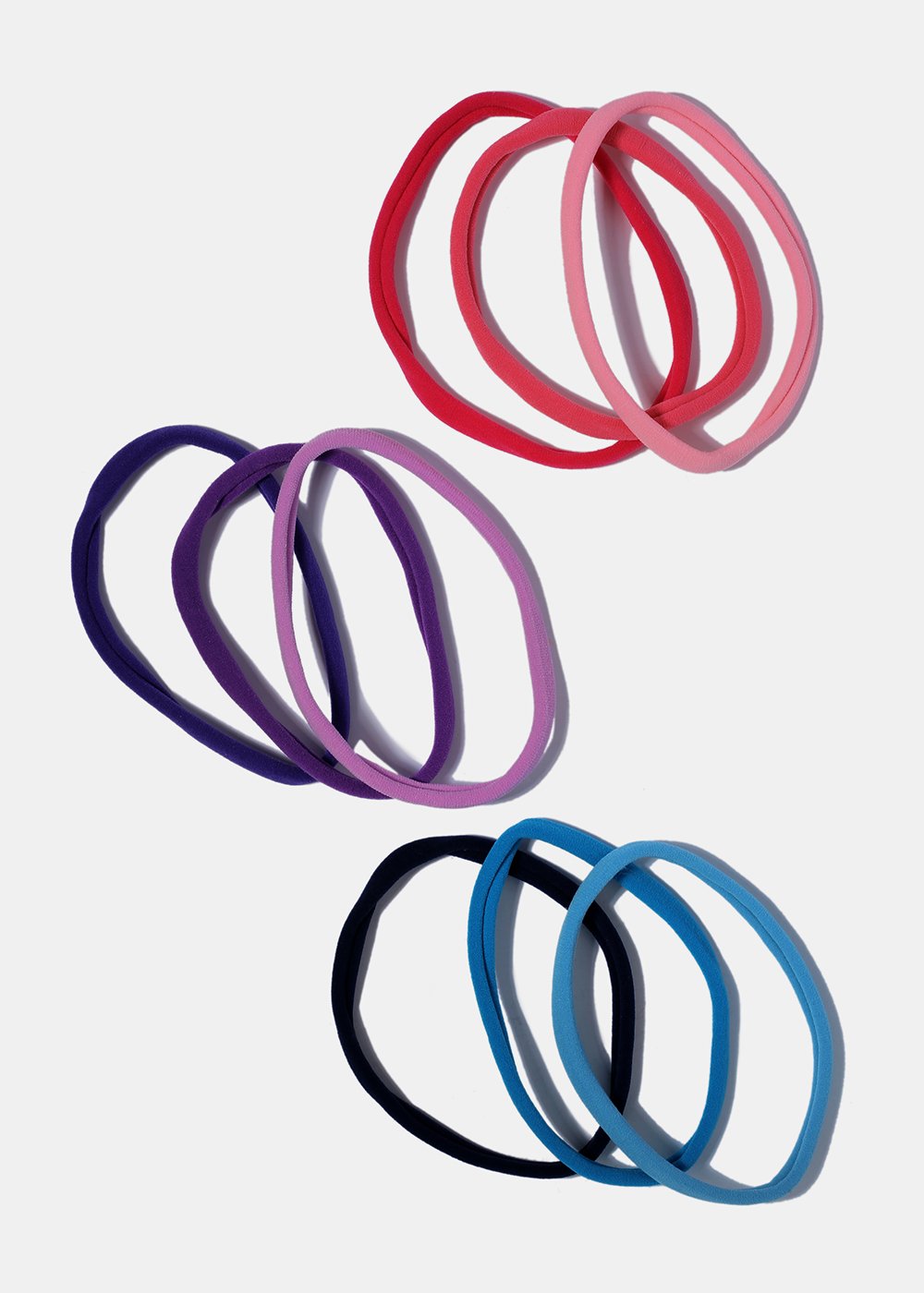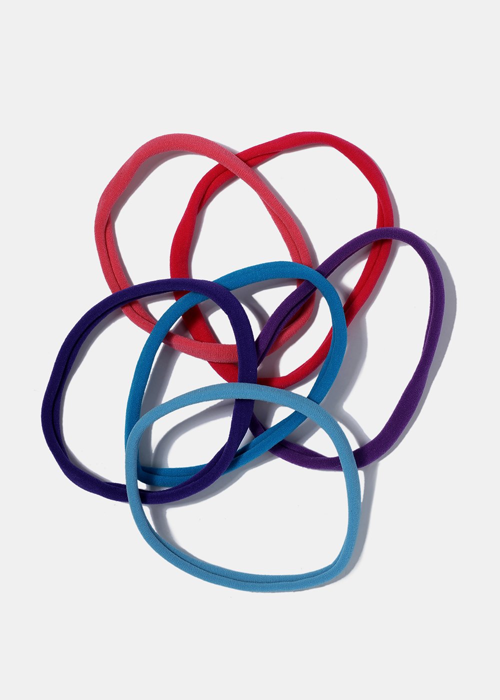 Six piece pack of bright color hair ties with a long length perfect for those with thicker hair that need a little more hold. These are soft and strong and will stay put all day!