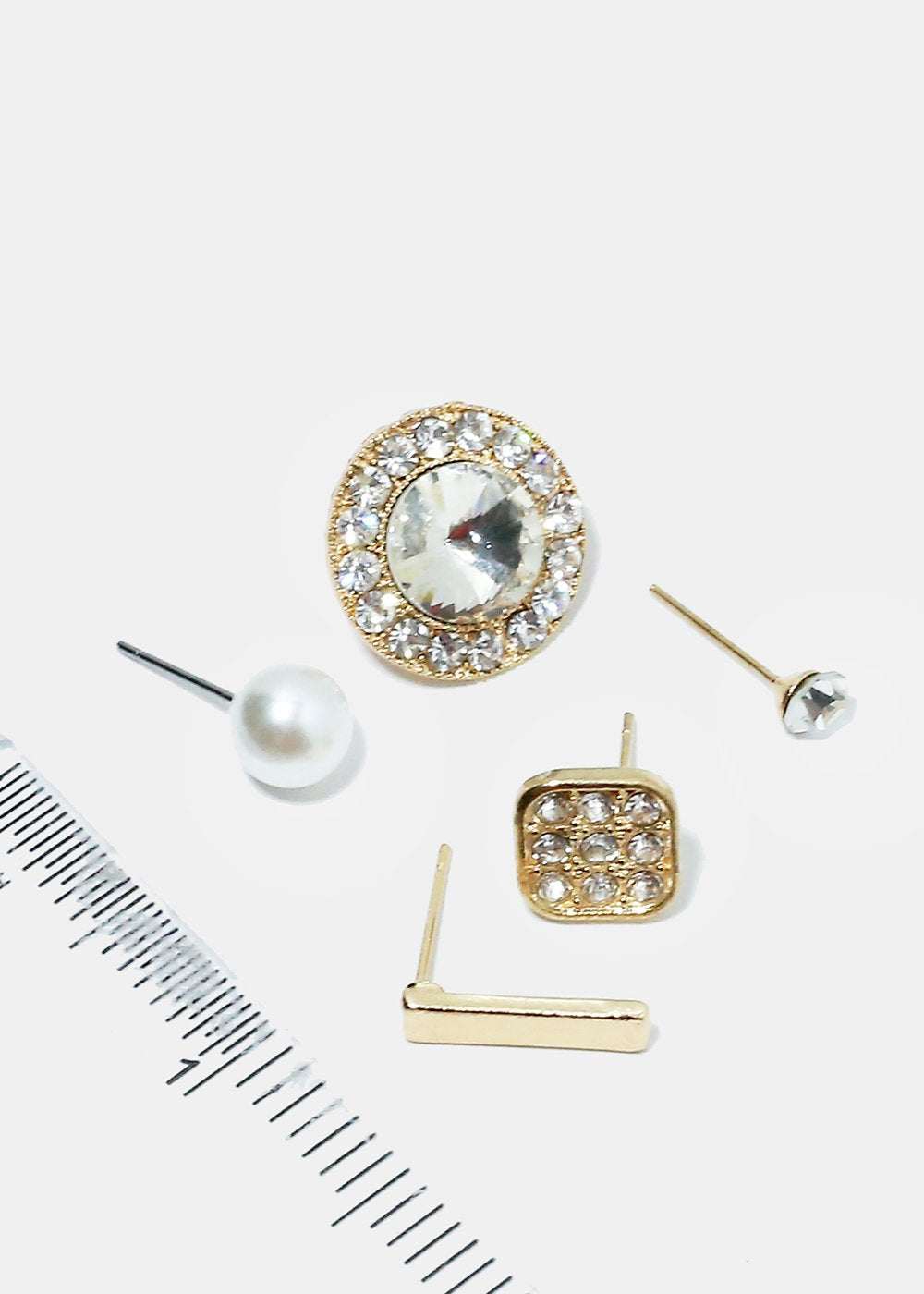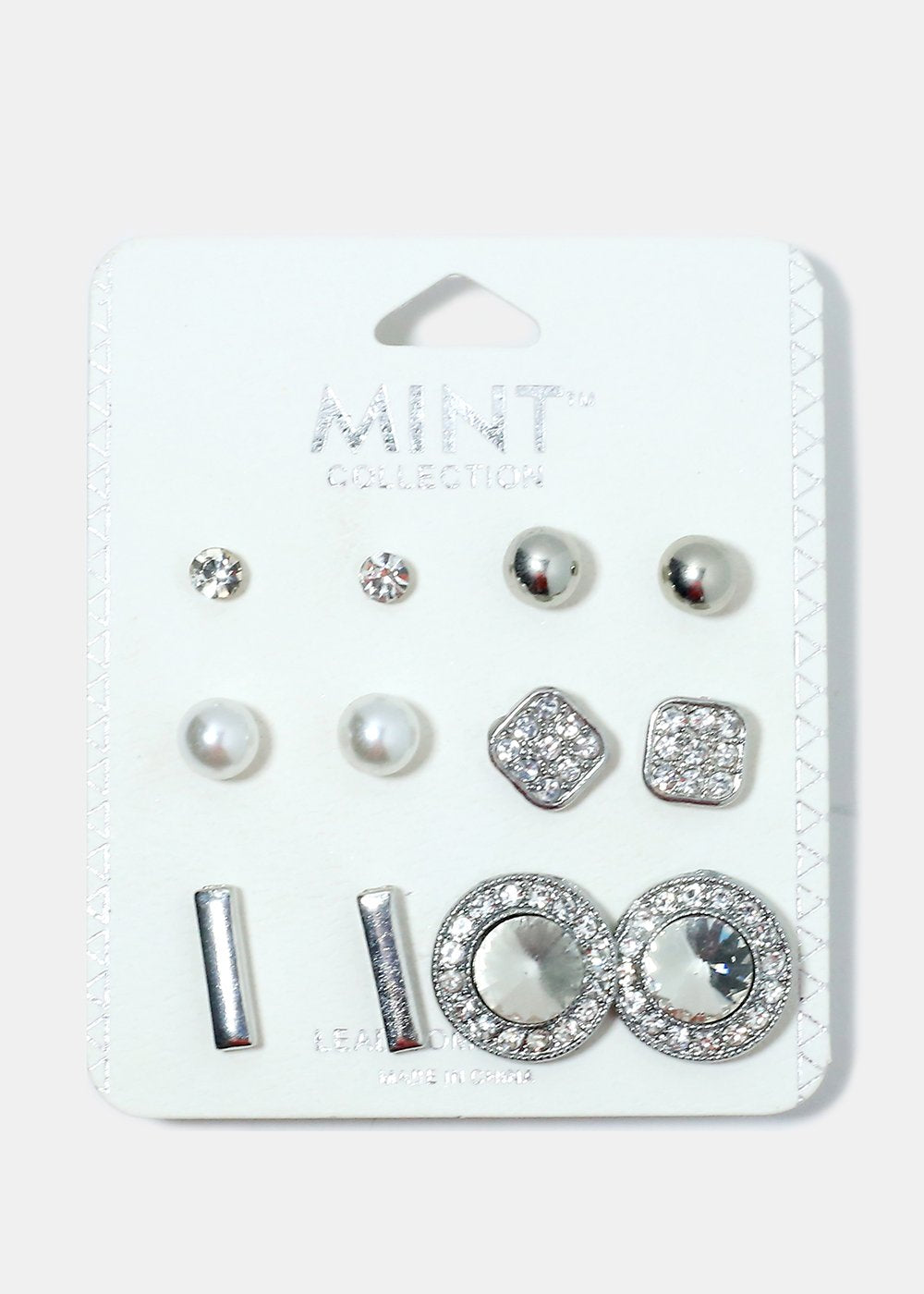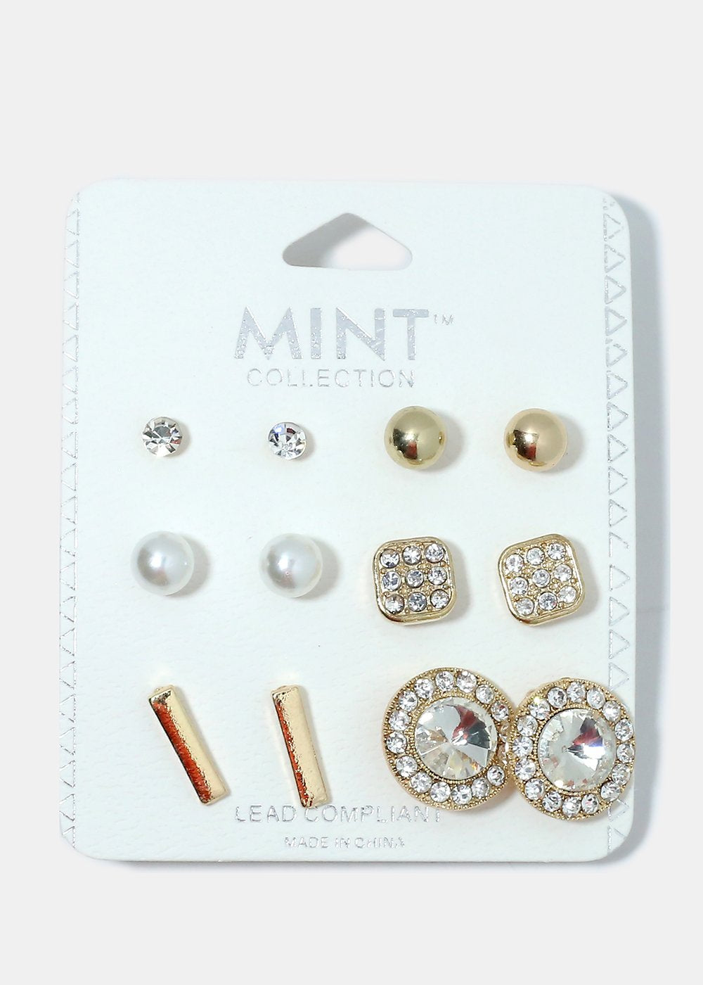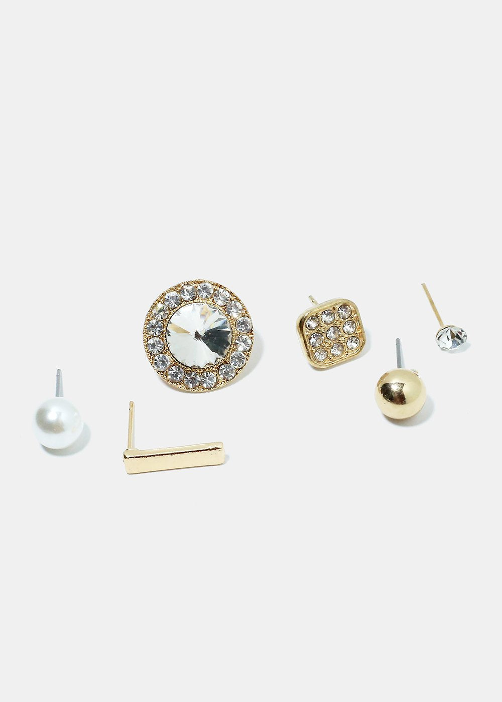 Lovely 6-Piece set of earrings featuring rhinestone, ball, and circled designs. A set that will perfectly match with any and every outfit!
