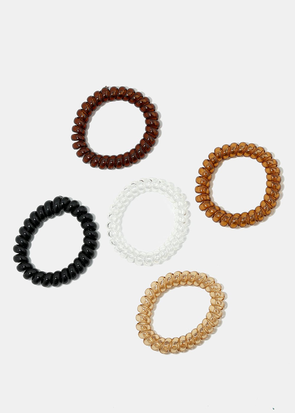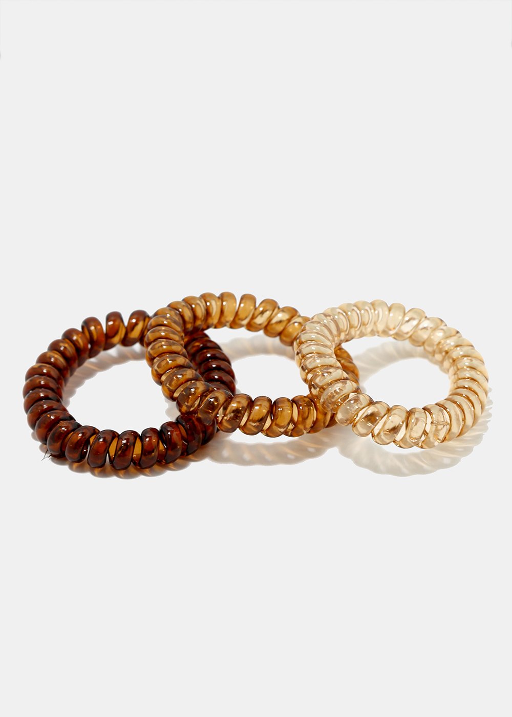 6-piece set of spiral design hair ties in neutral colors for a seamless look. These are perfect for your daily wear! They're stretchy yet give you a nice tight fit. A popular trend you don't want to miss out on!
