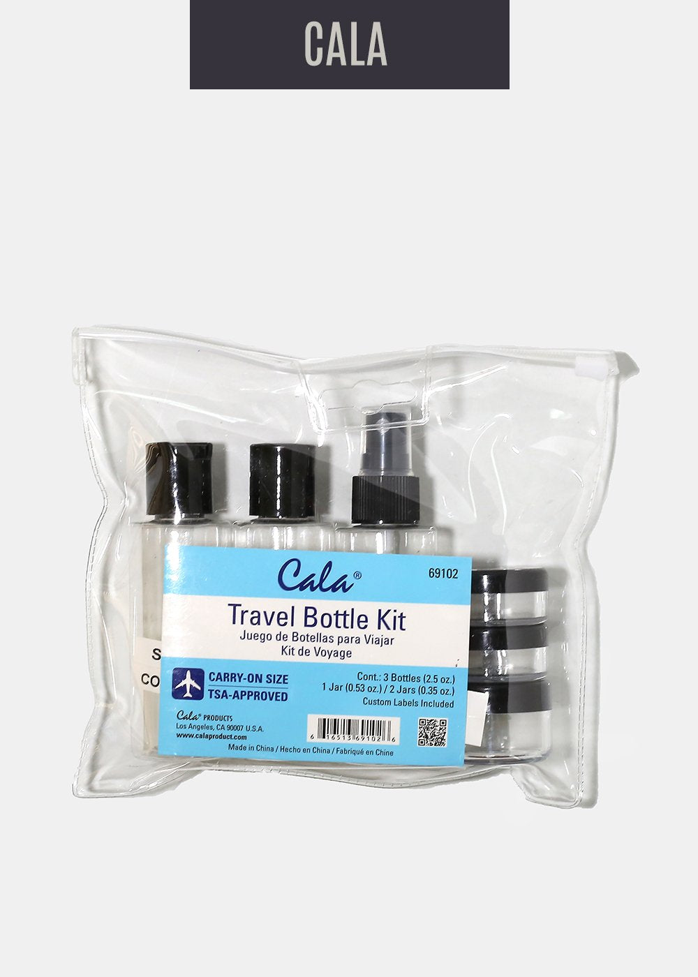 ONE TSA approved clear re-usable pouch to fit the bottle inside perfectly!
