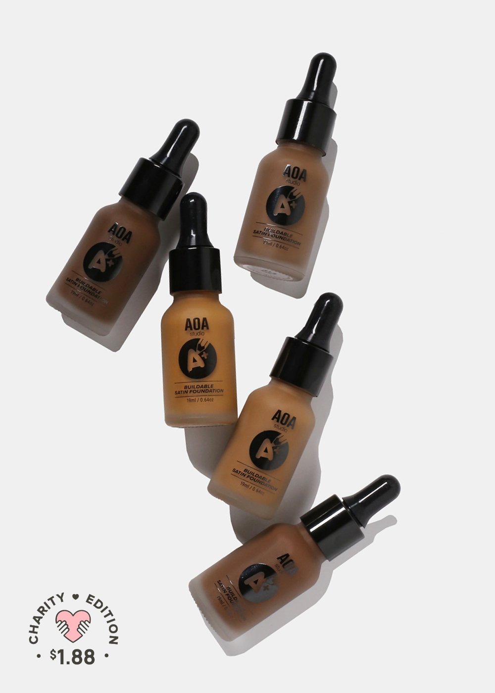 The new AOA Studio Liquid Drop Foundation! Available in 15 shades! This lightweight, natural formula leaves a gorgeous satin finish.  Start with a few drops all over the skin and blend. To build more coverage add more drops and continue blending. Finish off with concealer and set with powder!
