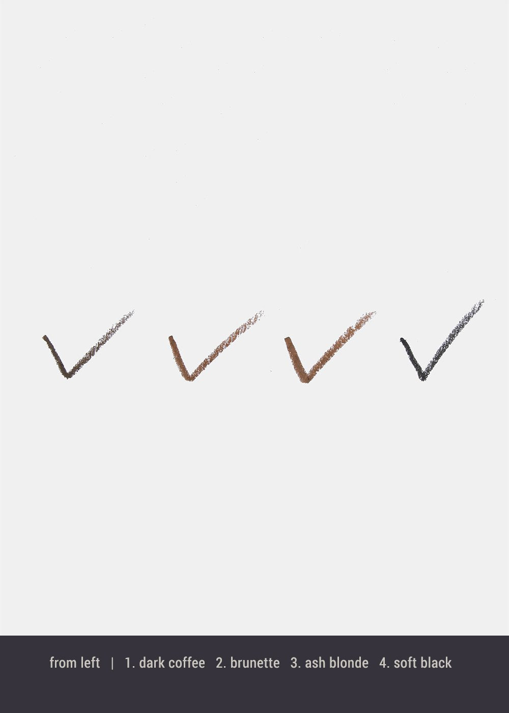 Pre-shaped brow pencil. easy and soft, yet precise and defined. The beautiful smooth texture allows for easy drawing and with a pre-set sharpener precision that comes naturally. The convenient brush tip also helps blending for a beautiful, perfectly finish brow look.