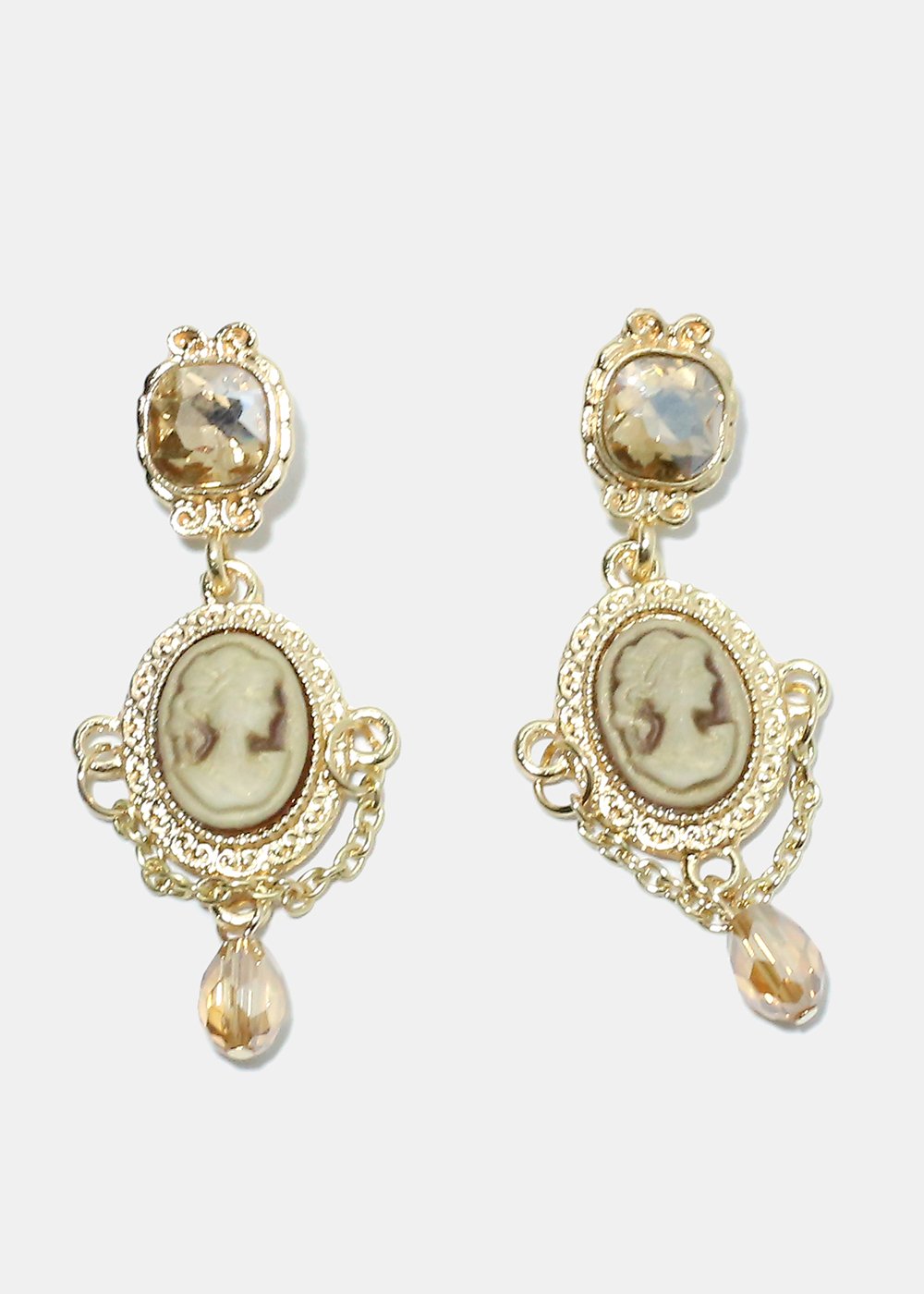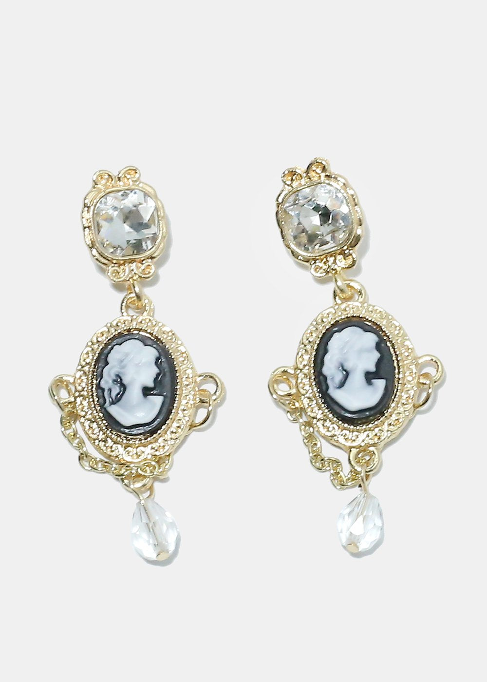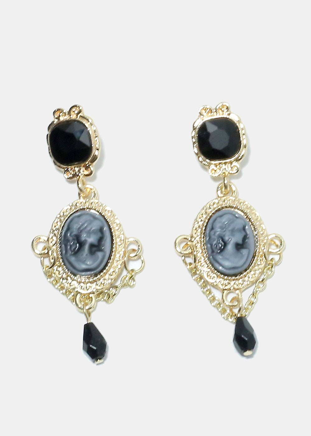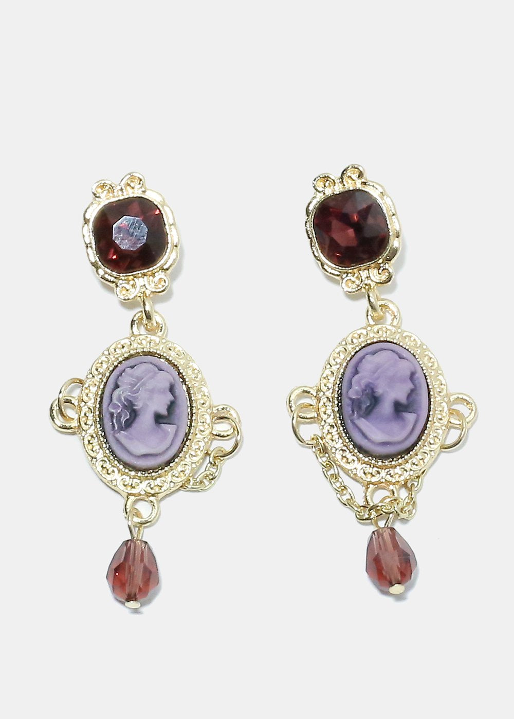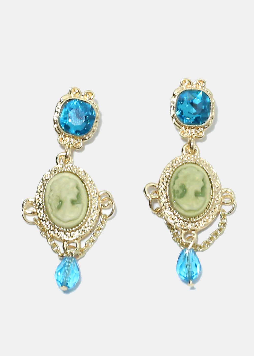 Absolutely beautiful pair of vintage earrings featuring a women's side profile and gorgeous colorful gemstones. An essential addition to your collection!