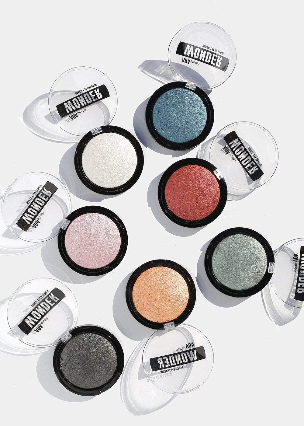 12 AOA Baked Eyeshadows. These shadows can be used wet or dry. A gorgeous range of colors from natural to vibrant!