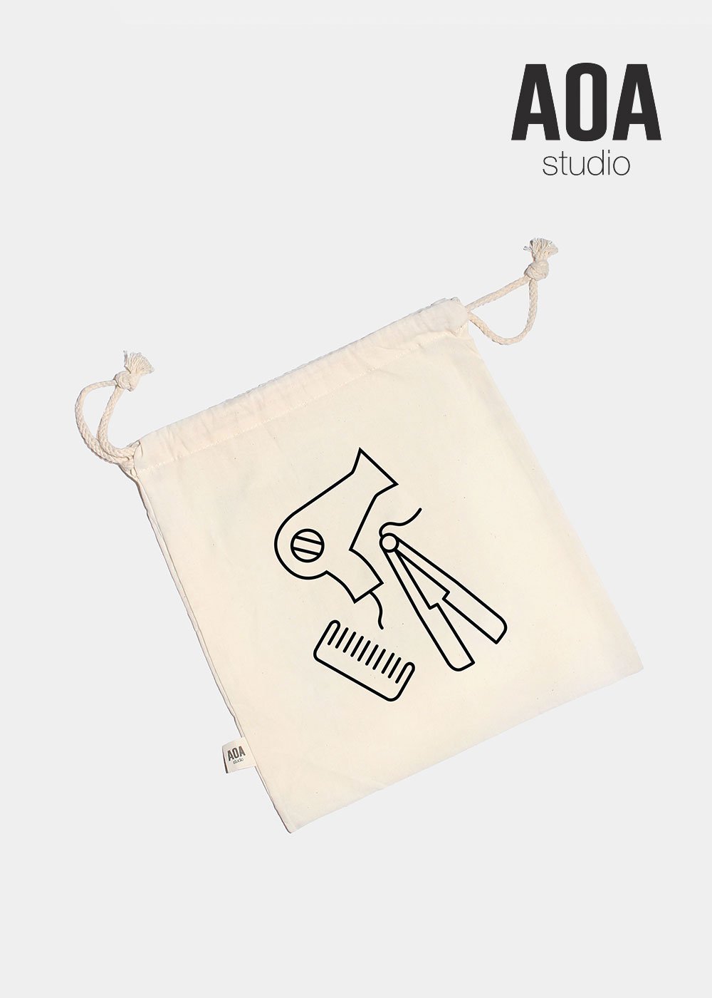 AOA Beauty Tools Canvas Bag, holds your hair dryer, curling iron, brushes, hair clips and accessories! Or you can use it for larger toiletries as well! Super soft canvas and drawstring closure. Great for weekend getaways, longer trips, the gym bag or just to keep your tools organized under the sink!