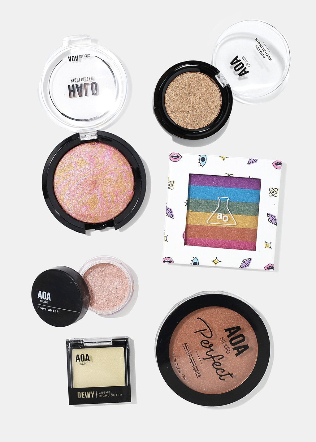 Try this 12 piece AOA highlighter kit that includes all different formulas and colors of highlighters by AOA Studio. From pressed, powder, cream, loose, mousse- get your glow on!