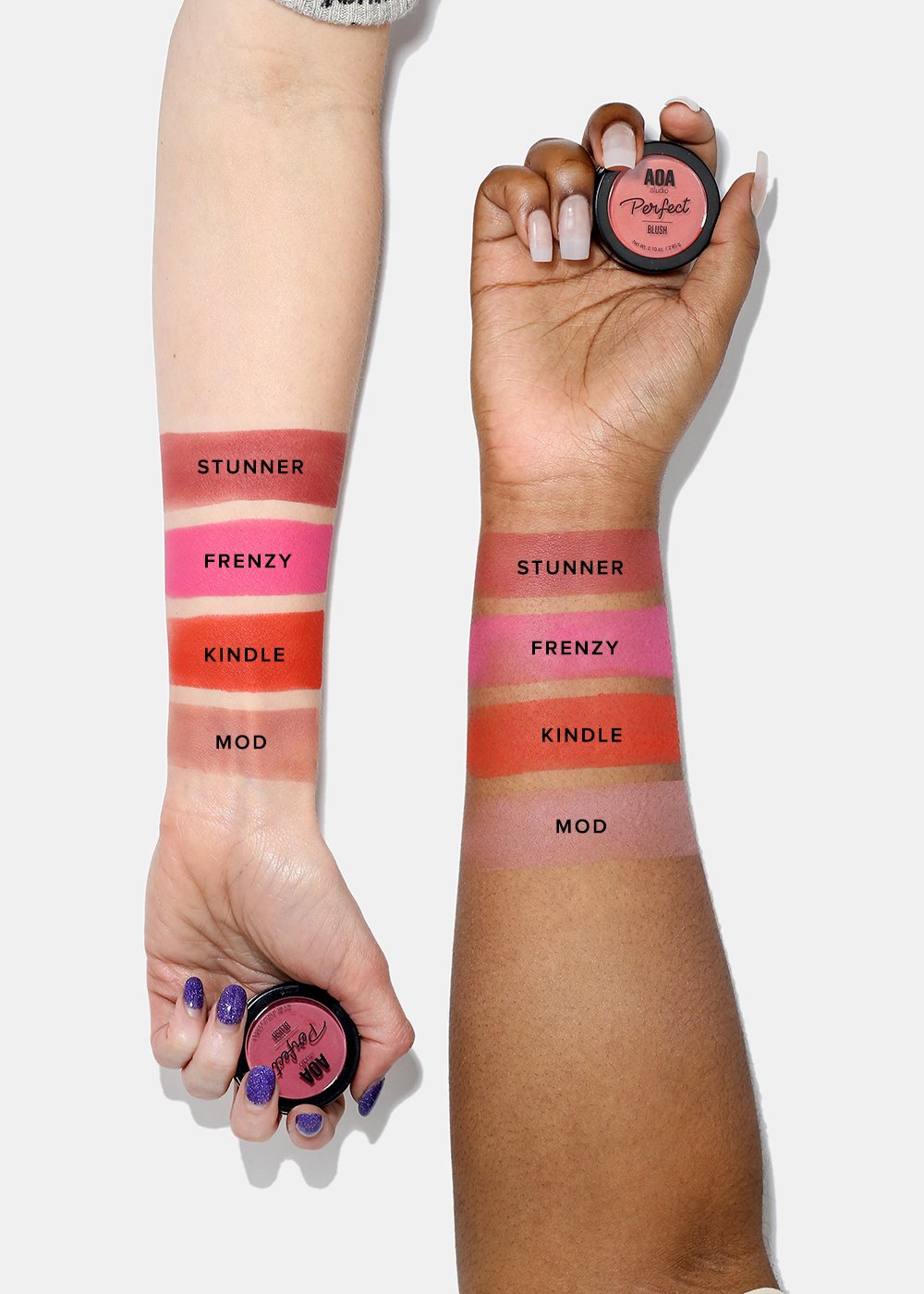 AOA Perfect Powder Blush is a fine, smooth, pigmented powder blush that glides on so naturally! The color is buildable from super natural to super bold! Compliments the AOA Perfect Pressed powder and AOA Perfect Pressed Highlighters!
