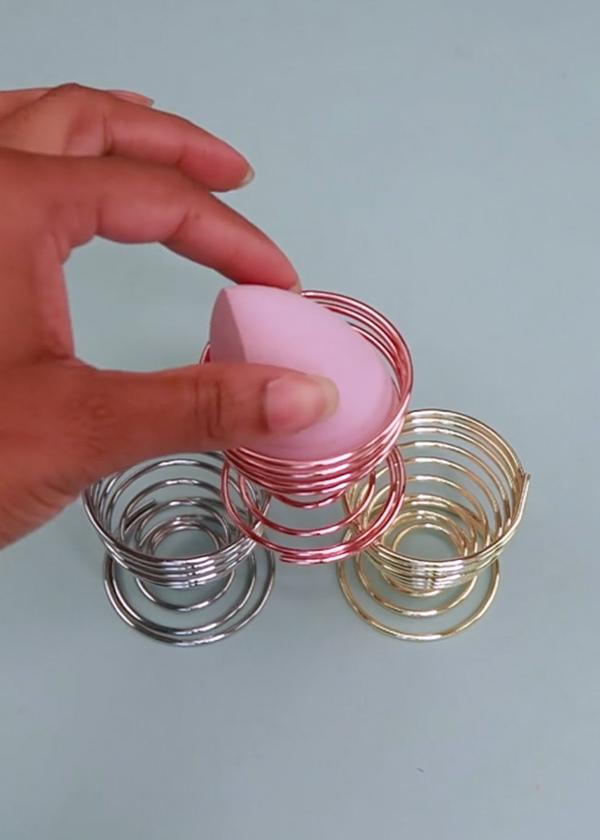 A perfect accent to add to your makeup table. This keeps the sponge from touching dirty surfaces and keeps it in an upright position while drying!