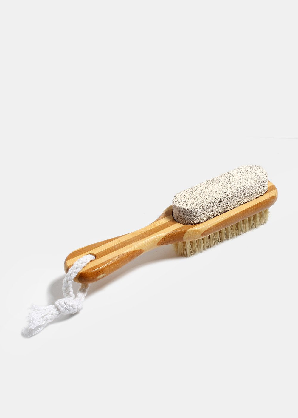 Keep feet clean and soft with this 2-in-1 bamboo nail brush and pumice stone. Effectively exfoliates rough skin and cleans under nails!