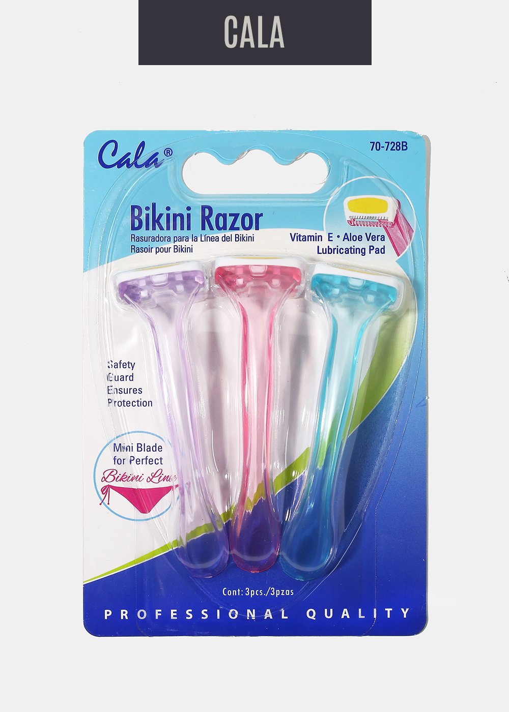 This 3 pack razor set is tiny and convenient for your bikini line! The pad has Vitamin E and Aloe Vera for smooth shaving.