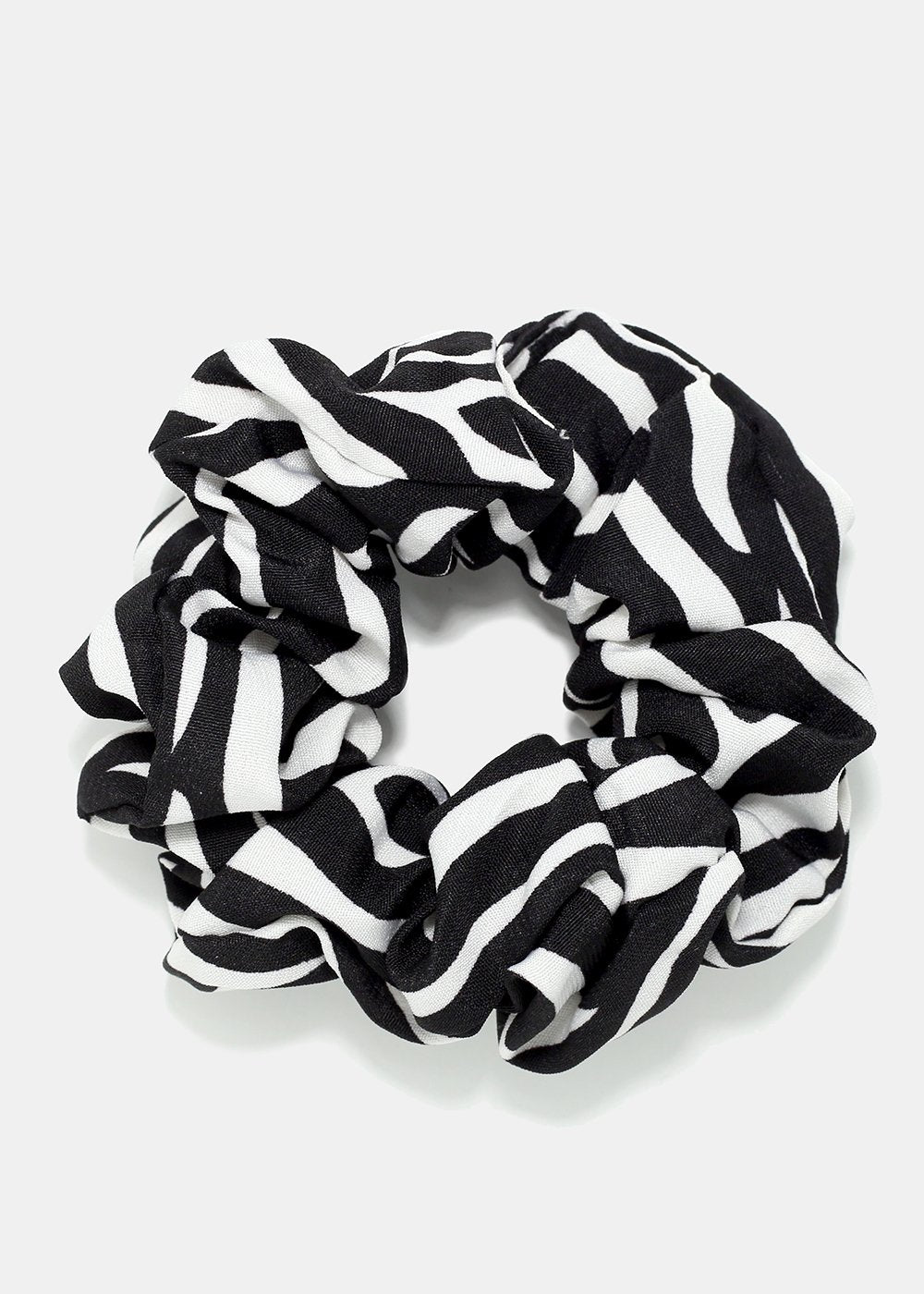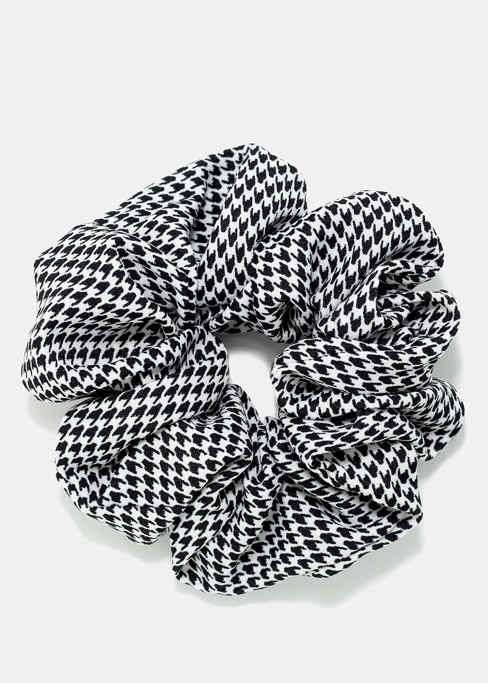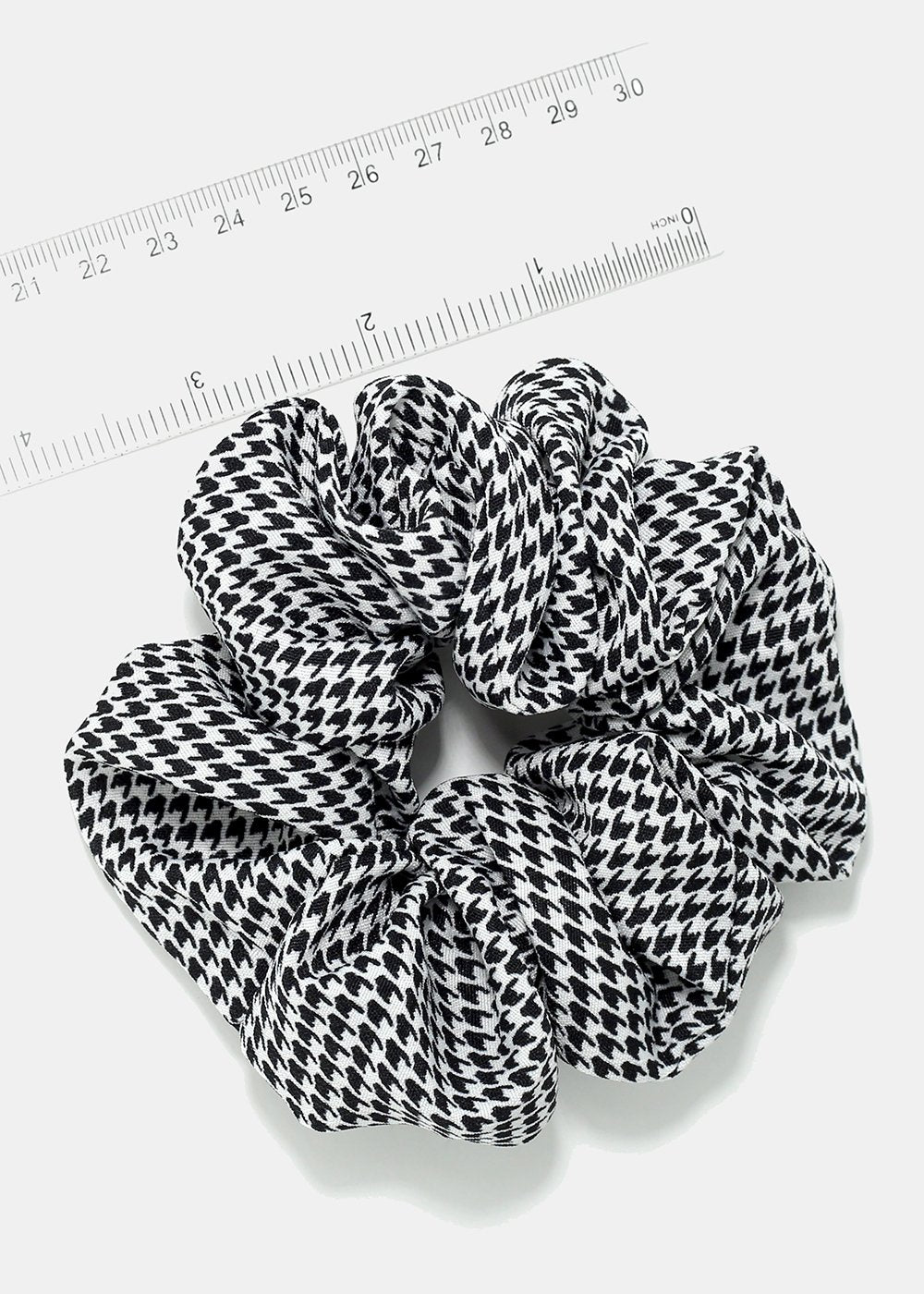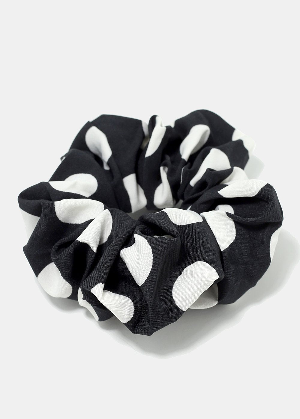 Classic black and white pattern scrunchies featuring polka dot, stripe, and patterned designs. An essential basic you must keep in your collection!