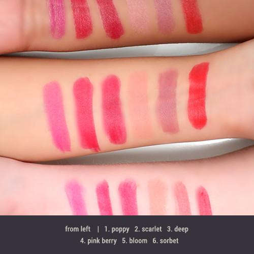 These deep shades of matte lipsticks are creamy, velvety and well pigmented.Tip: Go Ombre by mixing 2 shades.