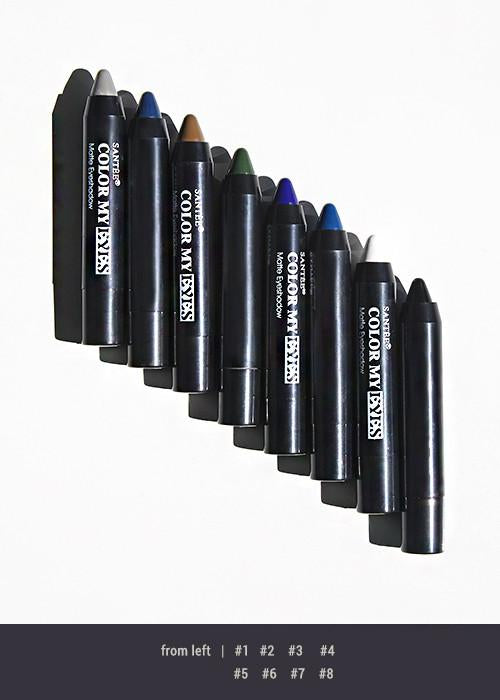 Santee Color My Eyes- Matte Bold Eyeshadow sticks are the hottest items for this upcoming season! These matte shadow sticks are perfect for laying down as a base or for a smokey eye look. They also work fabulously as an eyeliner for a pop of color. You will be amazed at the pigmentation and quality of this shadow stick!