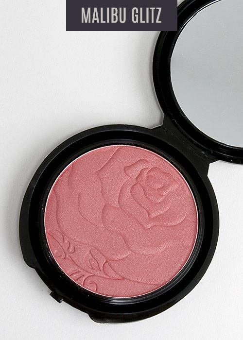 Malibu Glitz Rose Cheek Pop blush. Gorgeous blush with delicate rose design. This silky smooth, stay-true formula creates a vibrant, healthy-looking glow!