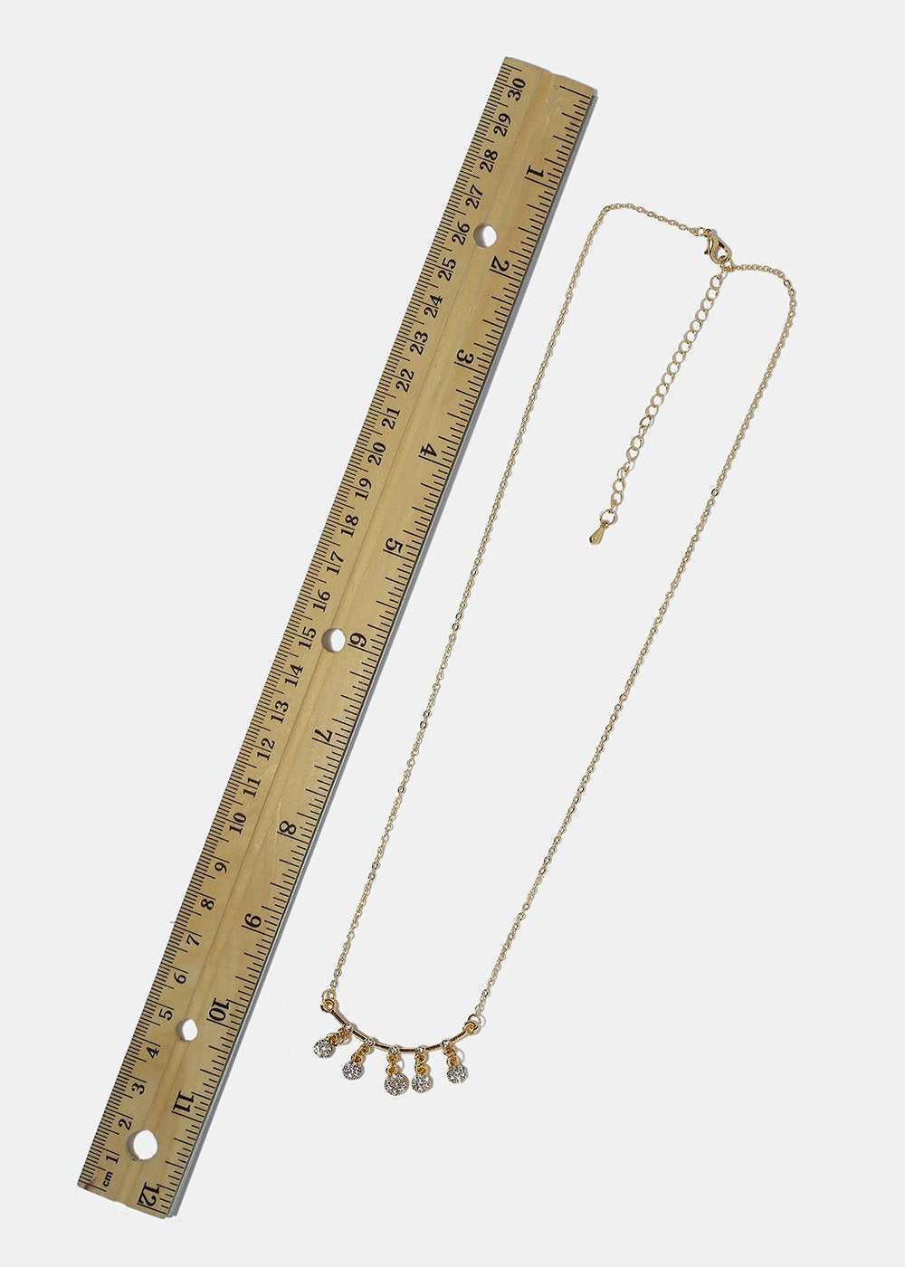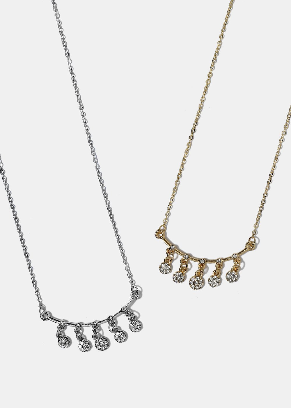Complete your casual or going out look with this chain necklace featuring dangling round gems hanging from curved bar. An effortlessly chic final touch!