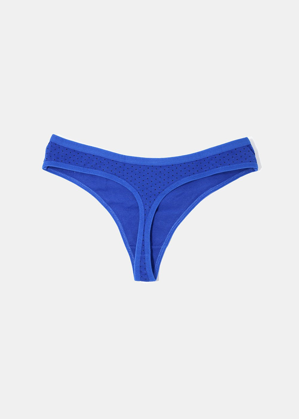 Comfy everyday thong panty featuring micro dot print and lace trim!