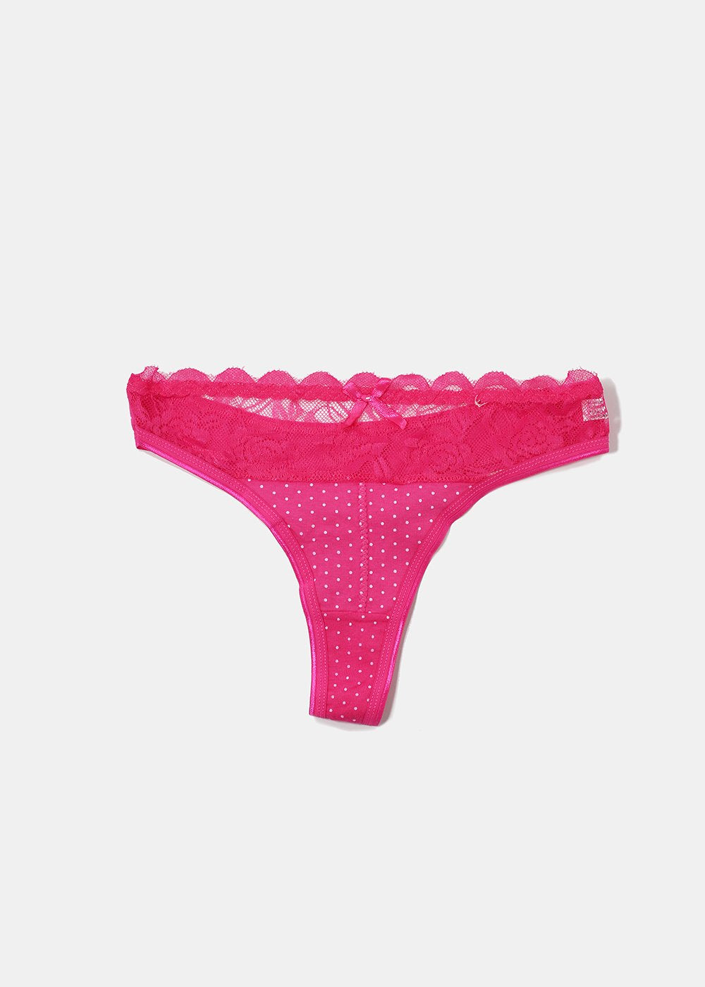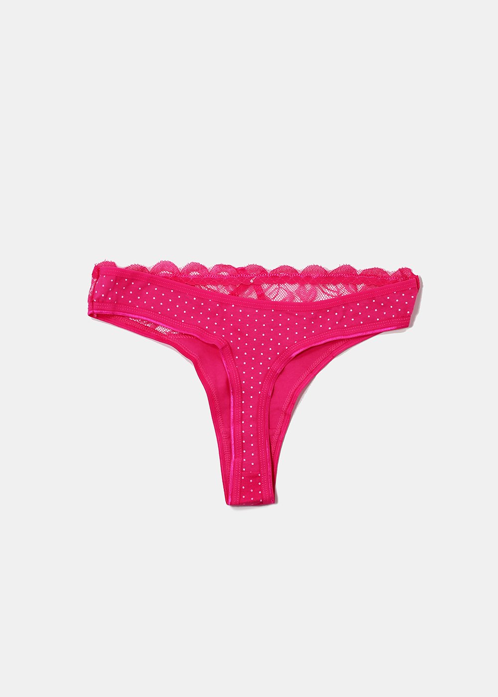 Adorable dotted thong panty featuring rose design mesh waistband!