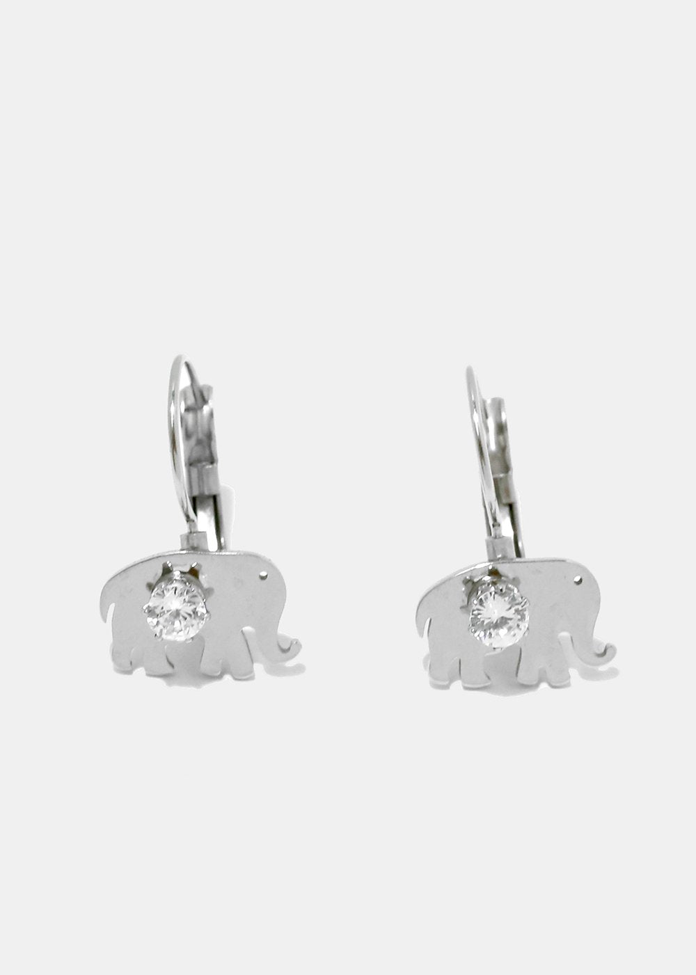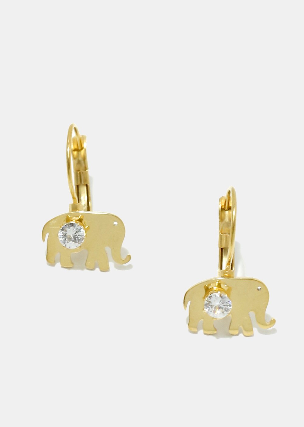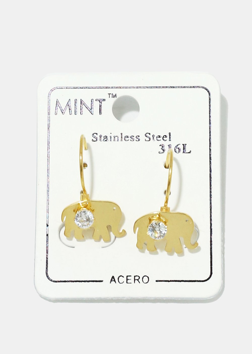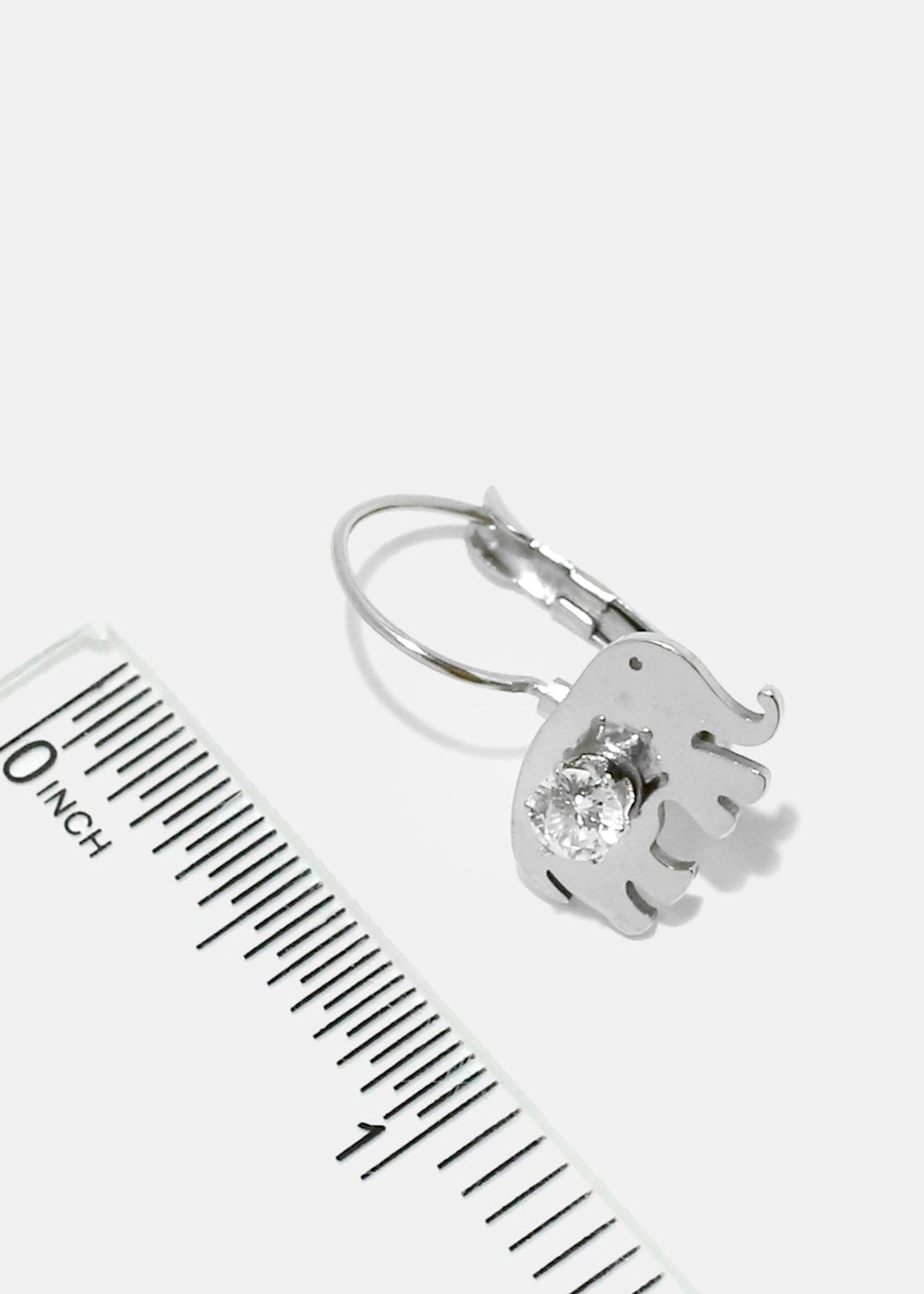 Gold or silver metal elephant shaped earrings featuring a rhinestone to add a pop of sparkle with a round lever back closure. A unique addition to your earring collection!