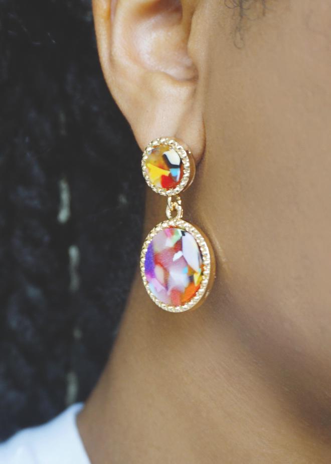 Gorgeous colorful enamel circle dangle earrings in gold or silver metal. Flatter any look by simply adding these beauties to your look! Adds a pretty sparkly touch and a nice pop of color!