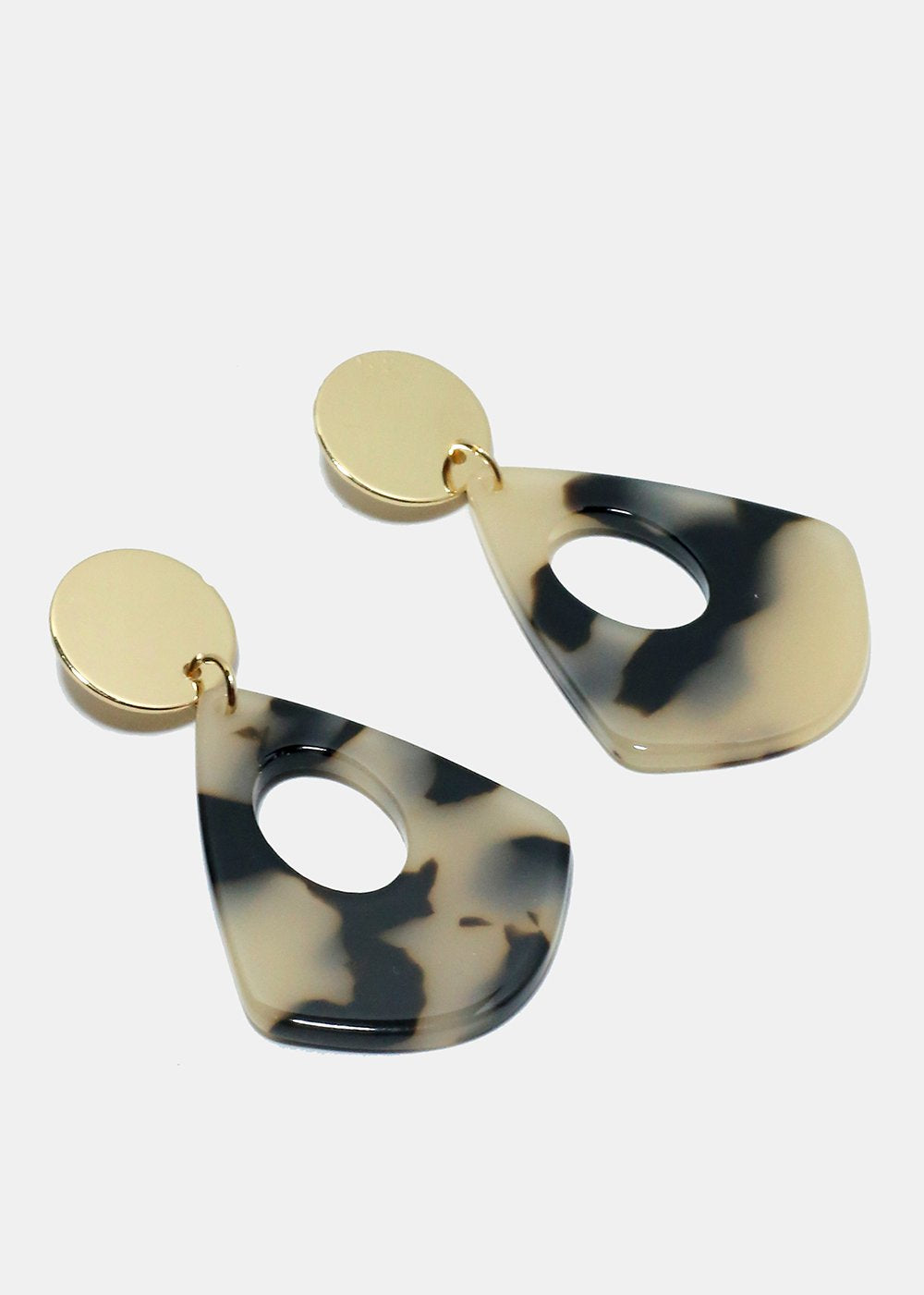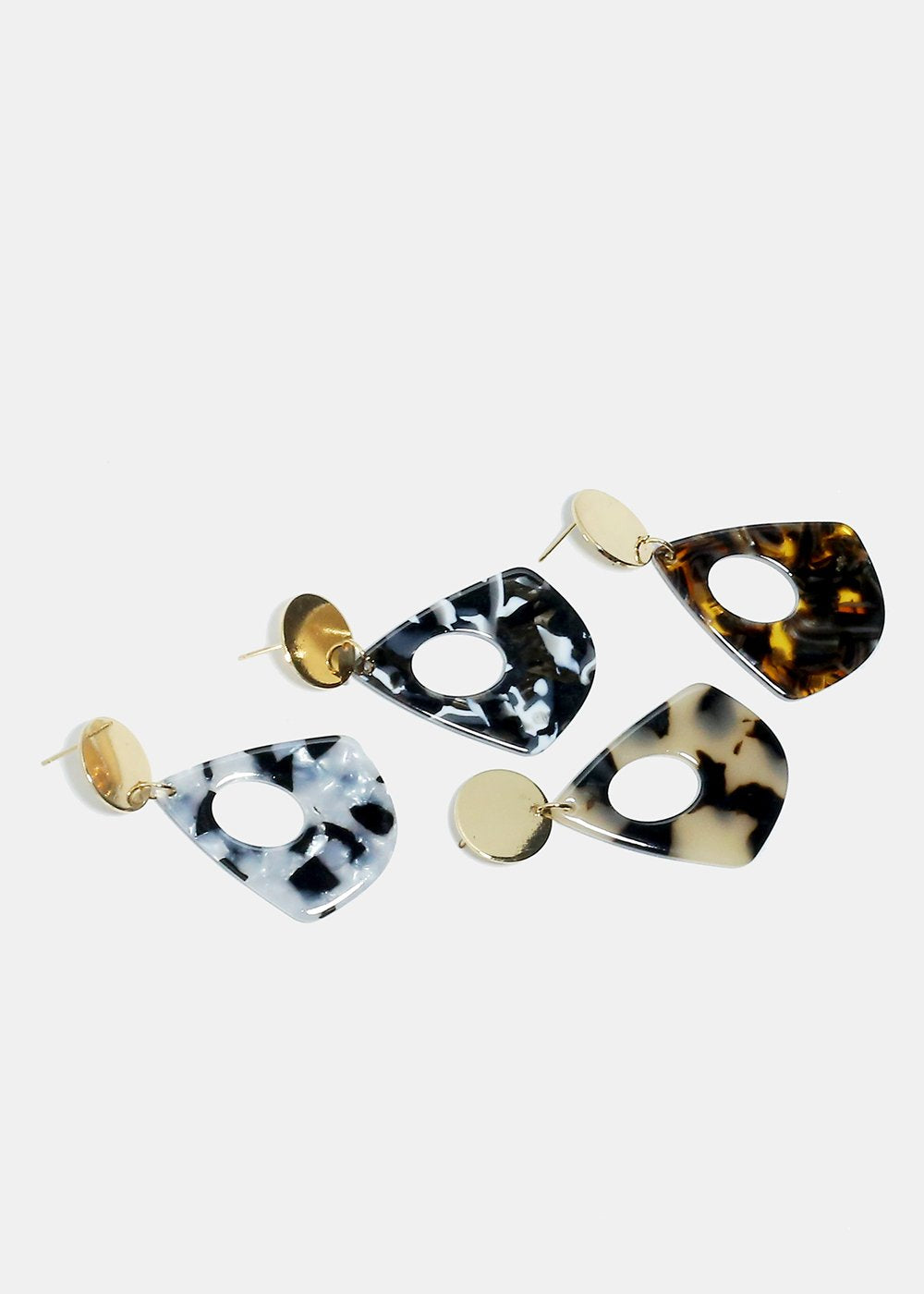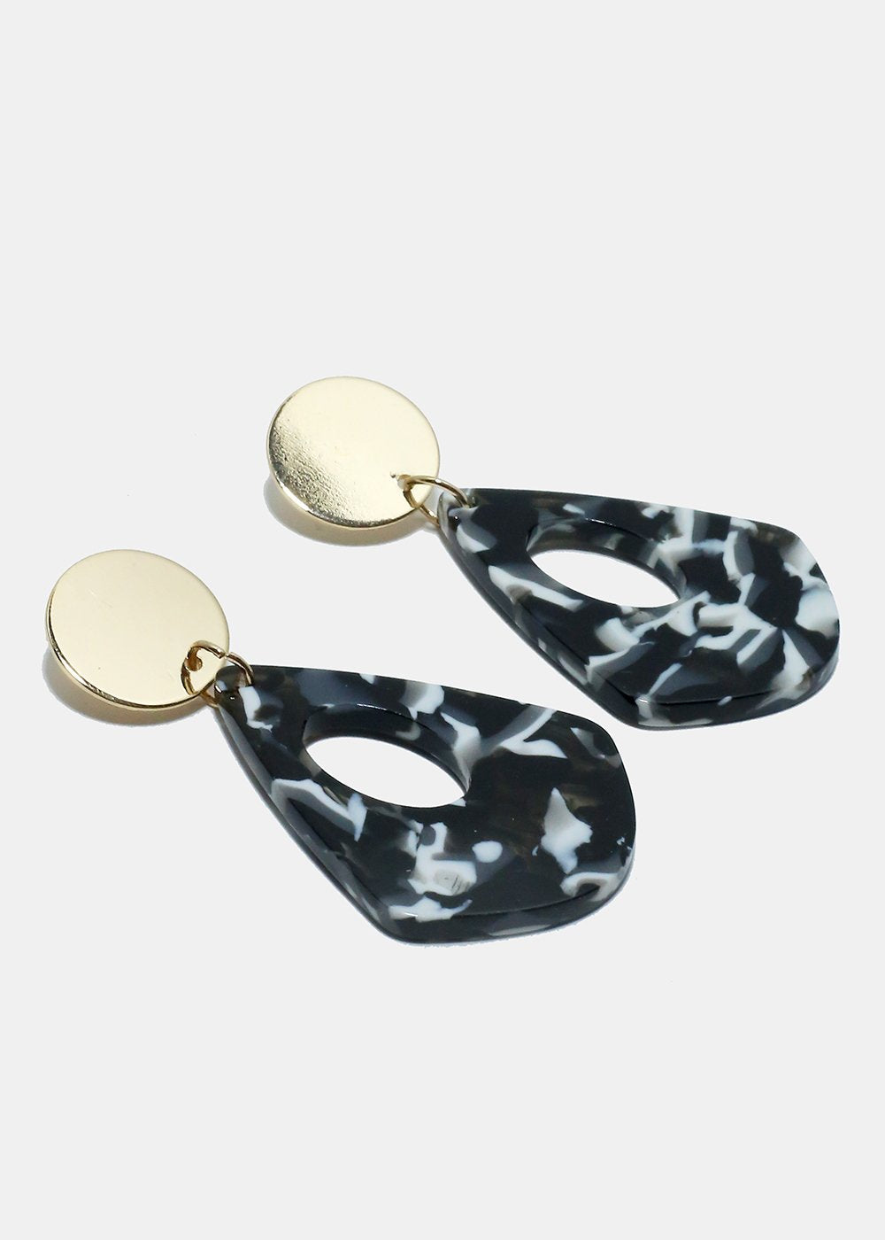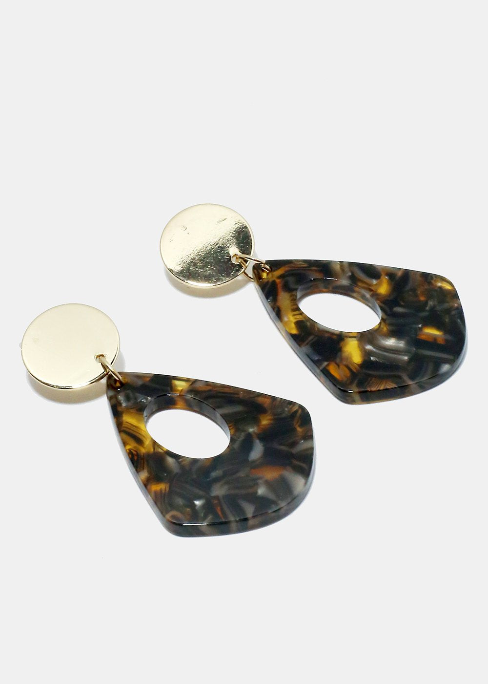 Trendy enamel teardrop earrings with a gold metal disk. A cute chic touch to your ensemble. A must-have for your earring collection!