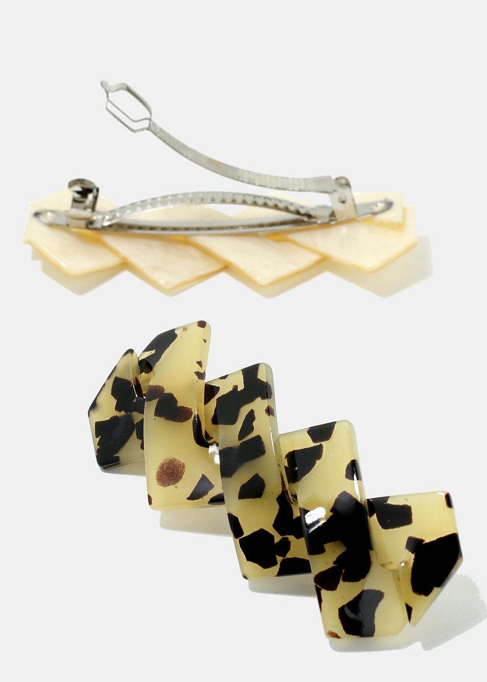 Unique designed hair barrettes featuring a twisted style. Choose from beautiful tones that will pair with any type of style. A must have for your collection.