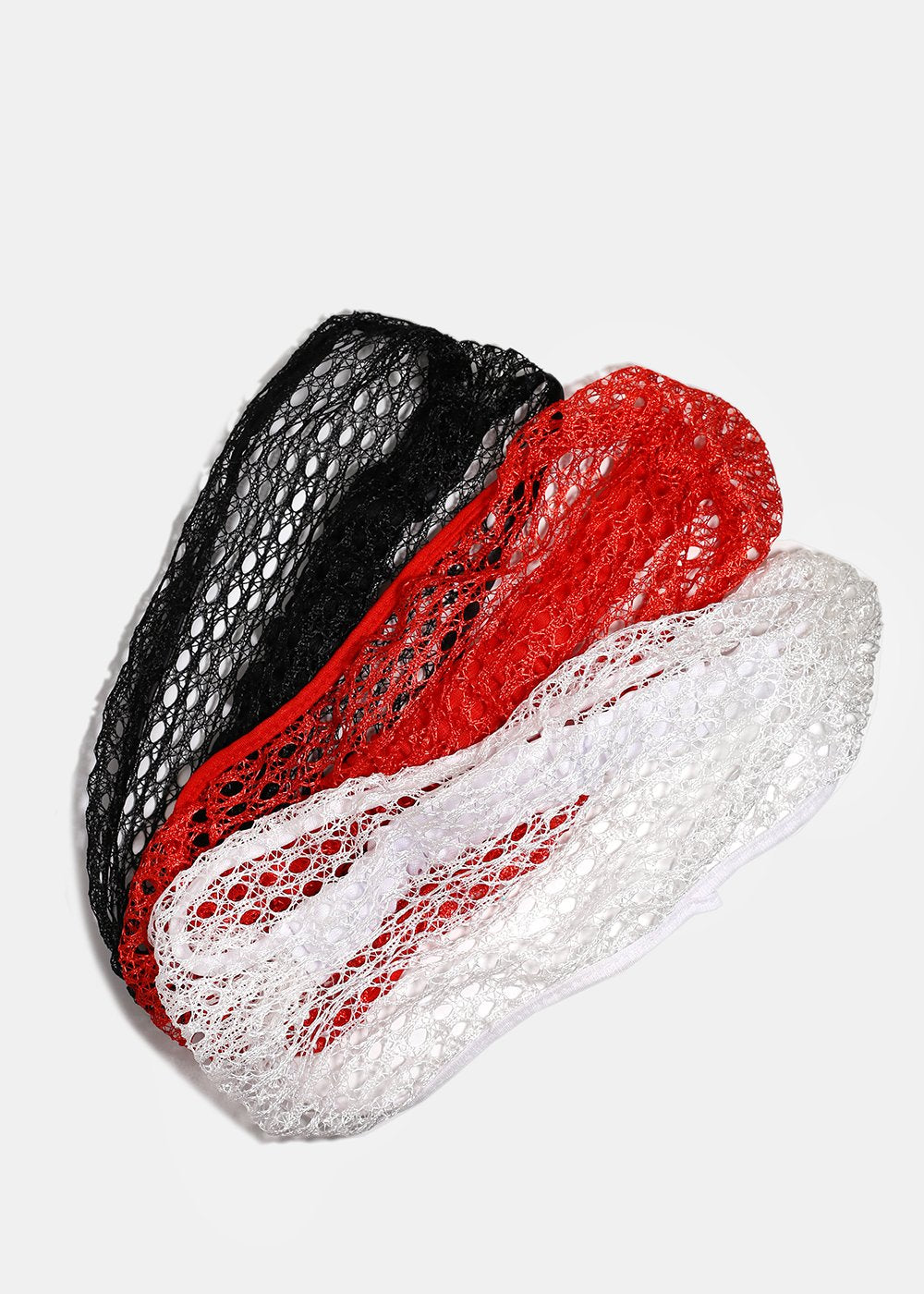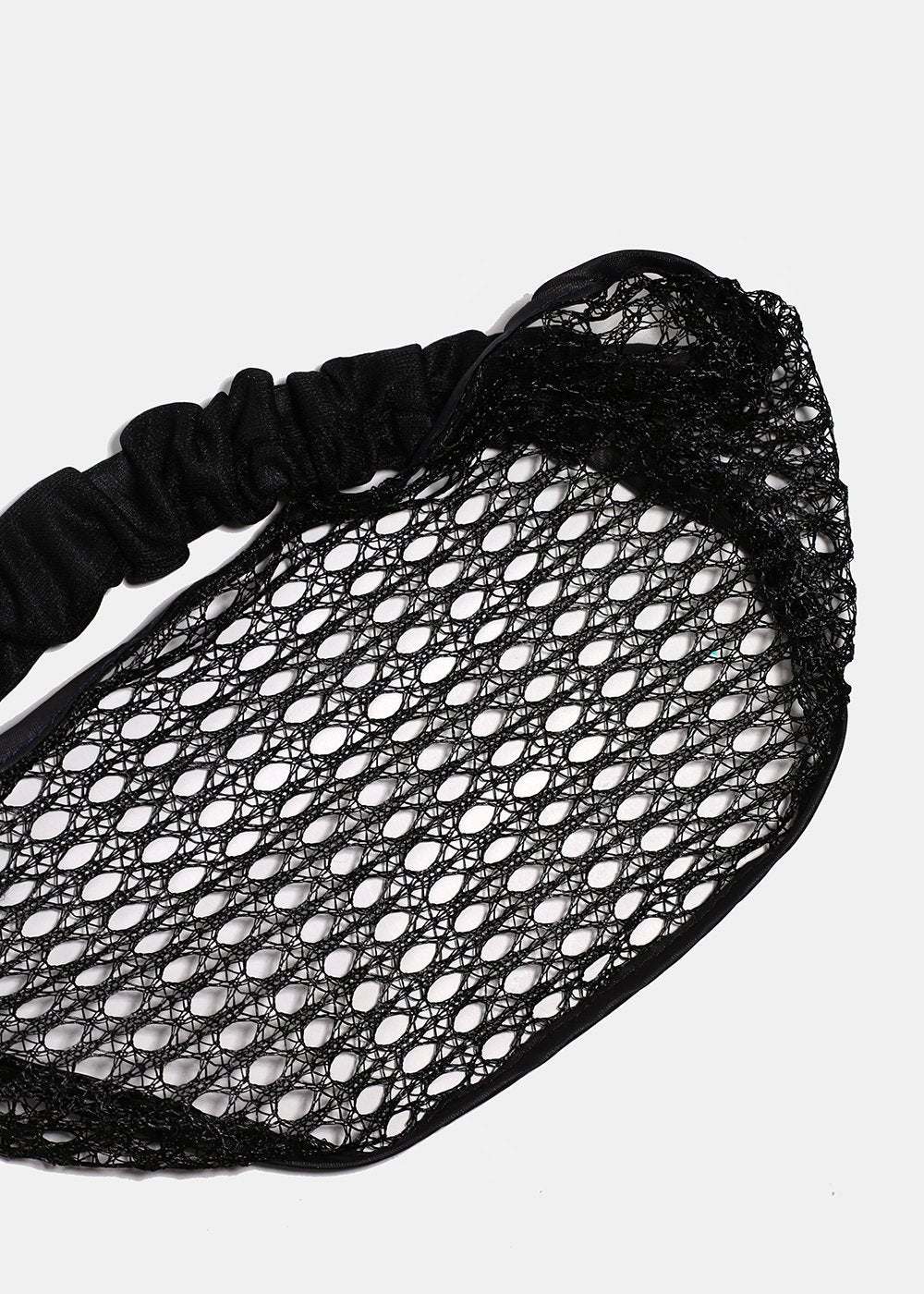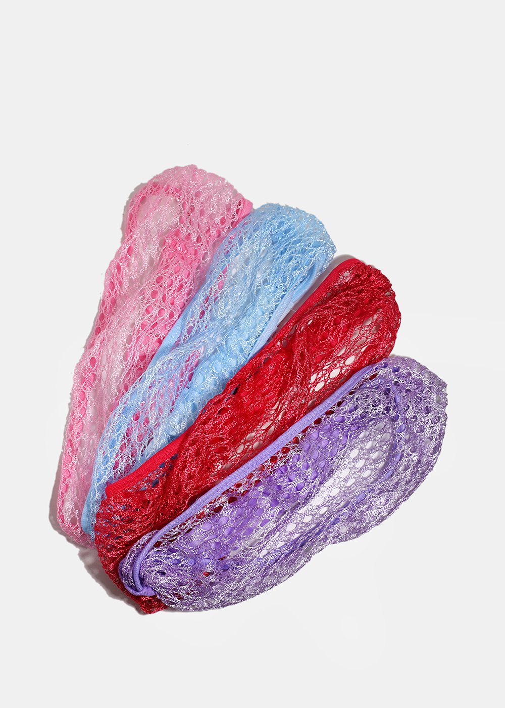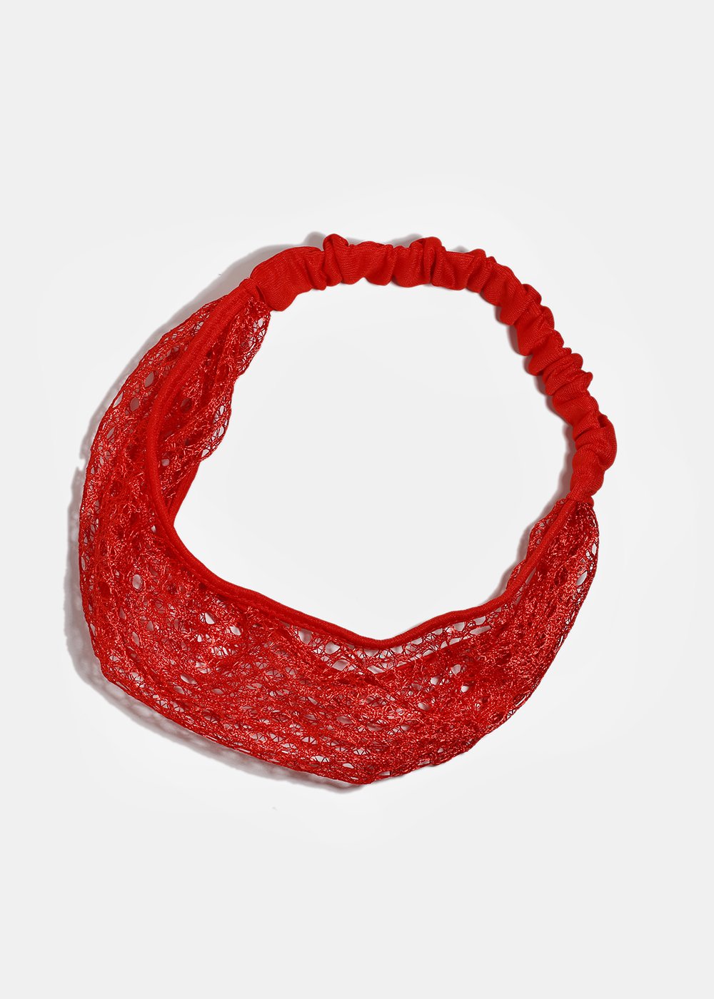 Lightweight fishnet-like headband with scrunched elastic back. Perfect for a casual summer look!