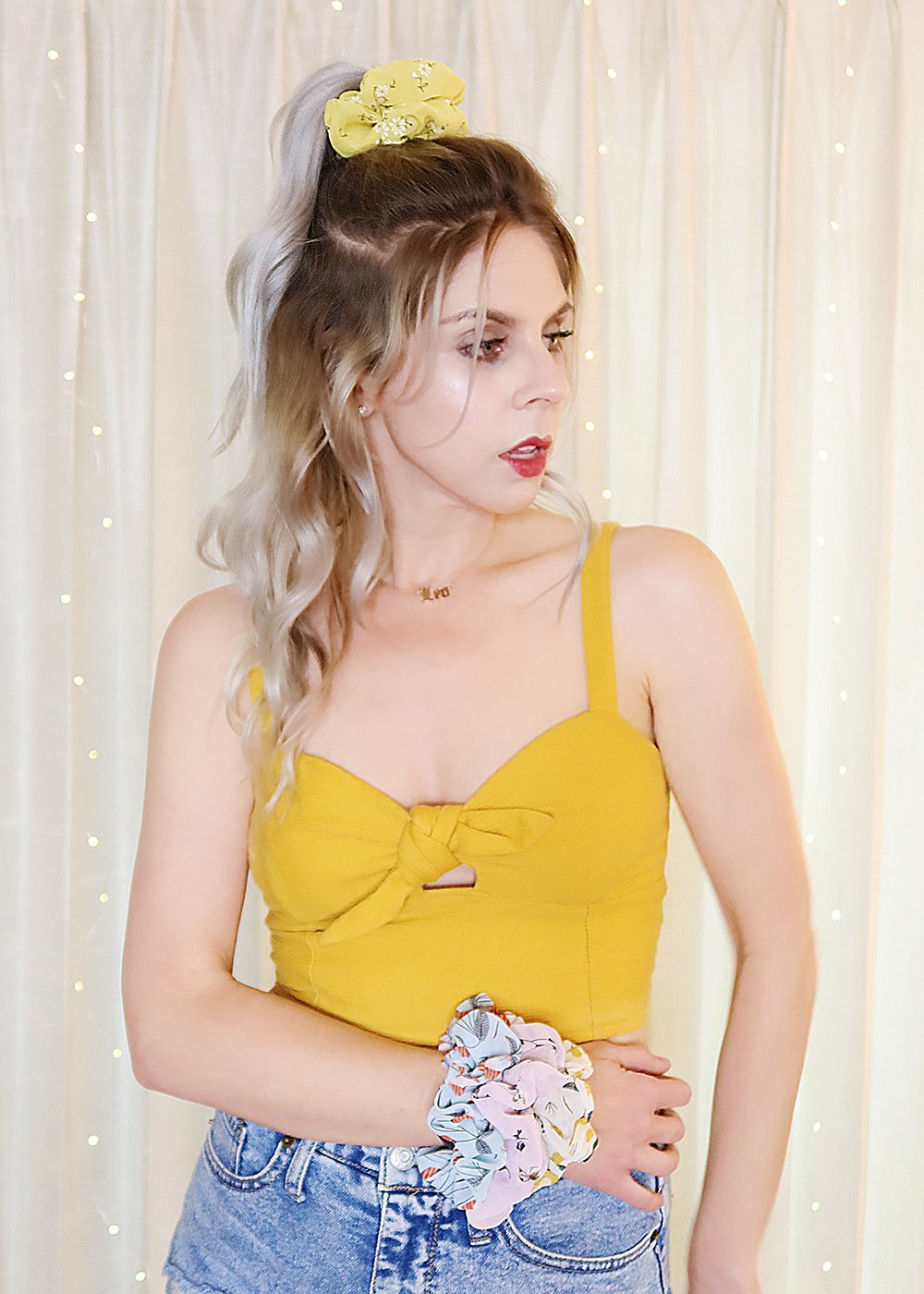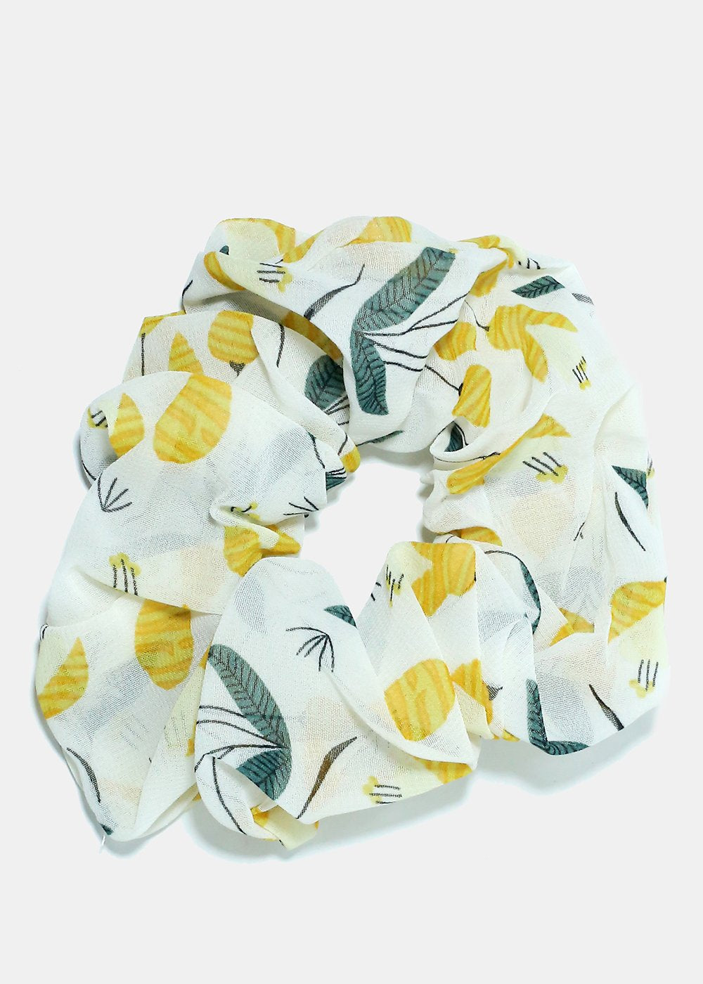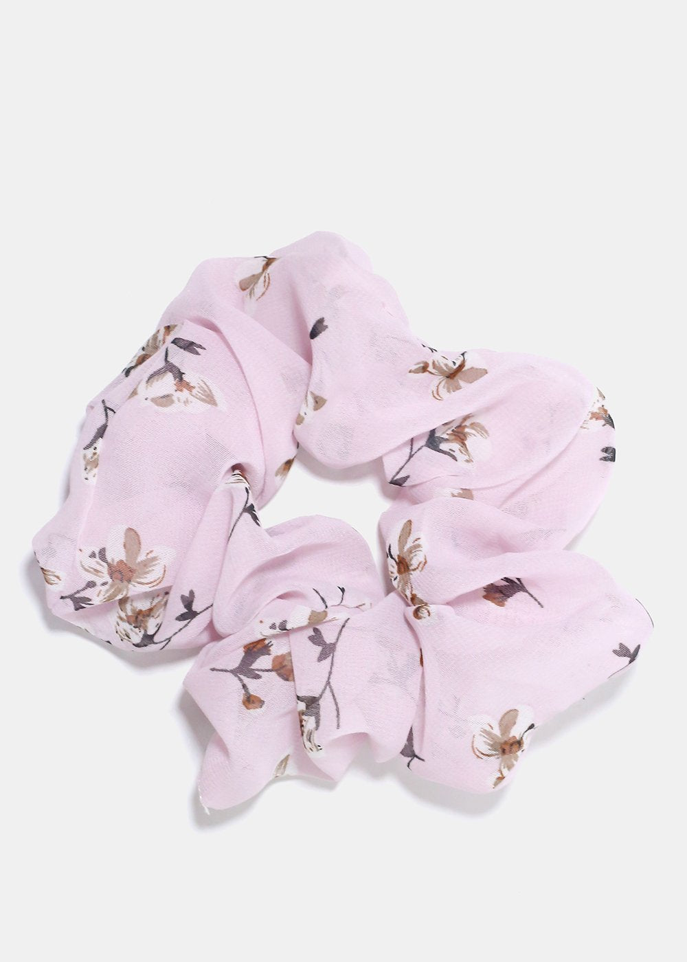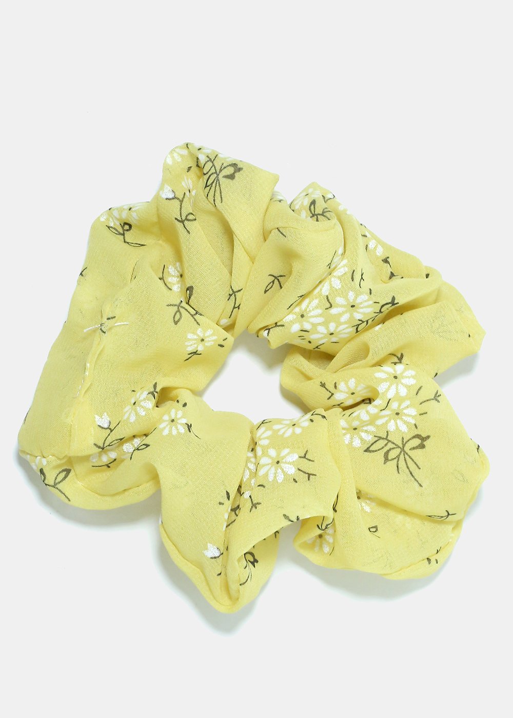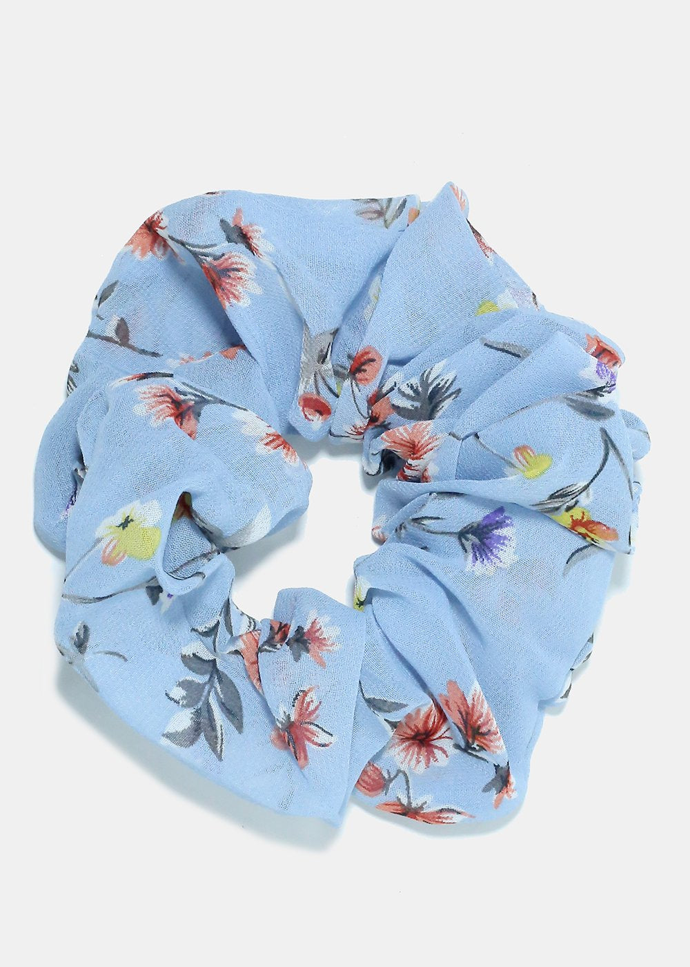 Soft and stretchy flower print scrunchie in multiple bright and vibrant colors! A chic and stylish addition to your ponytails, braids, or hair buns! This years must-have fashion trend!
