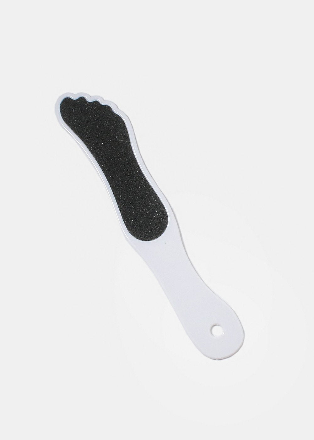 This pedicure file with easy grip handle is designed to remove rough areas of your feet. Wet the foot shaped file and rub rough areas in circular motions. One size.