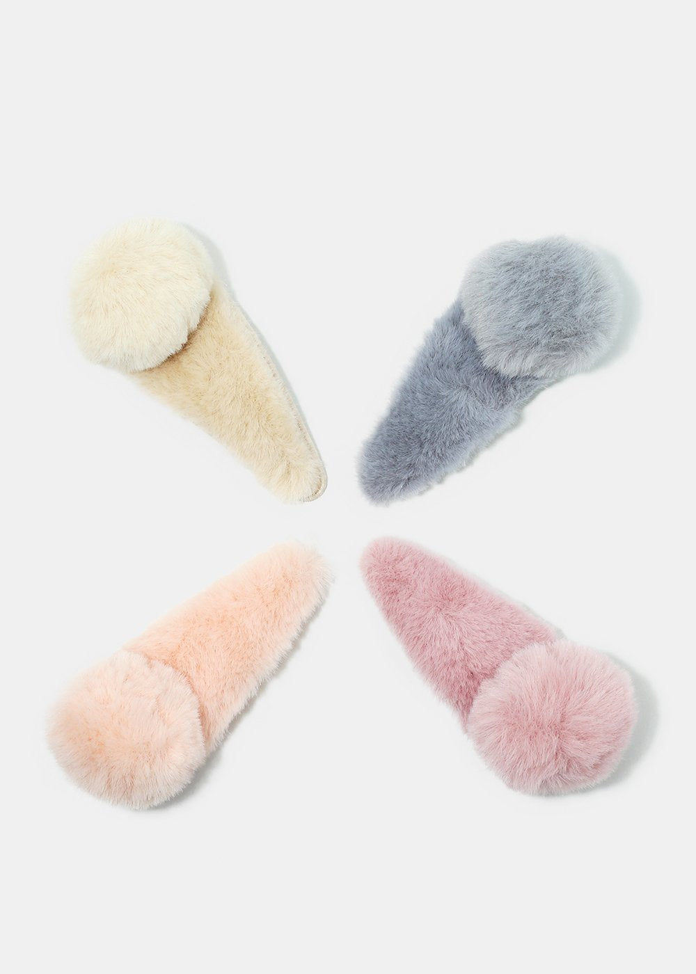 Fuzzy and adorable furry hair clips featuring a fluffy pom pom accent. These are super cute and super soft to the touch! Add a unique sweet touch to your hair-do! A must-have in your collection
